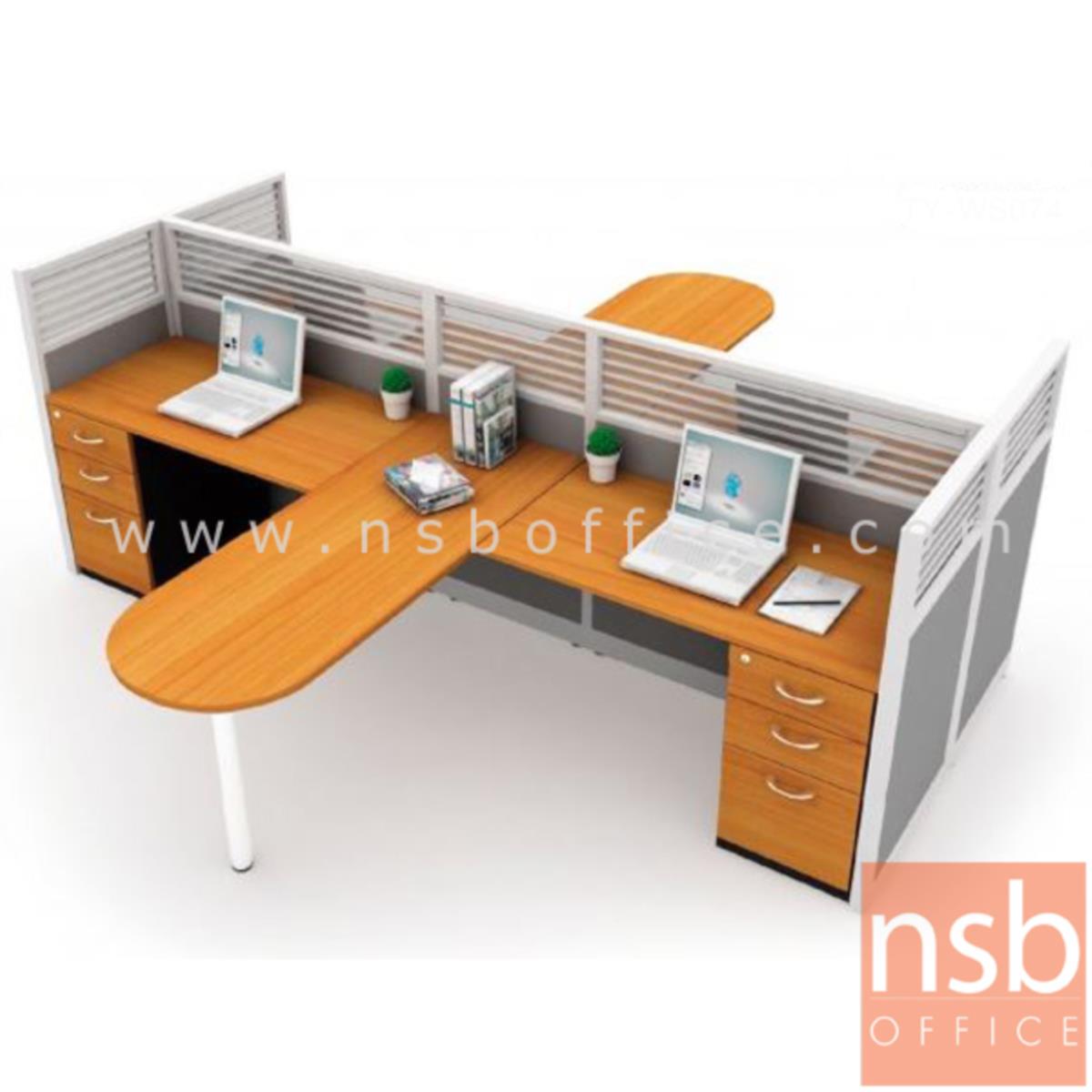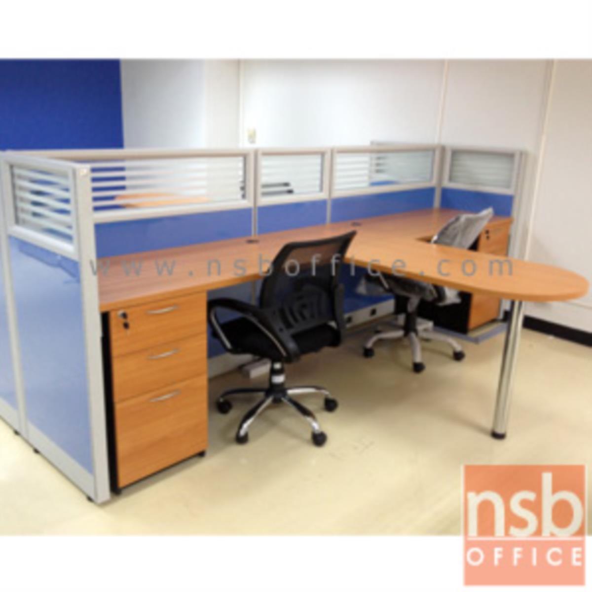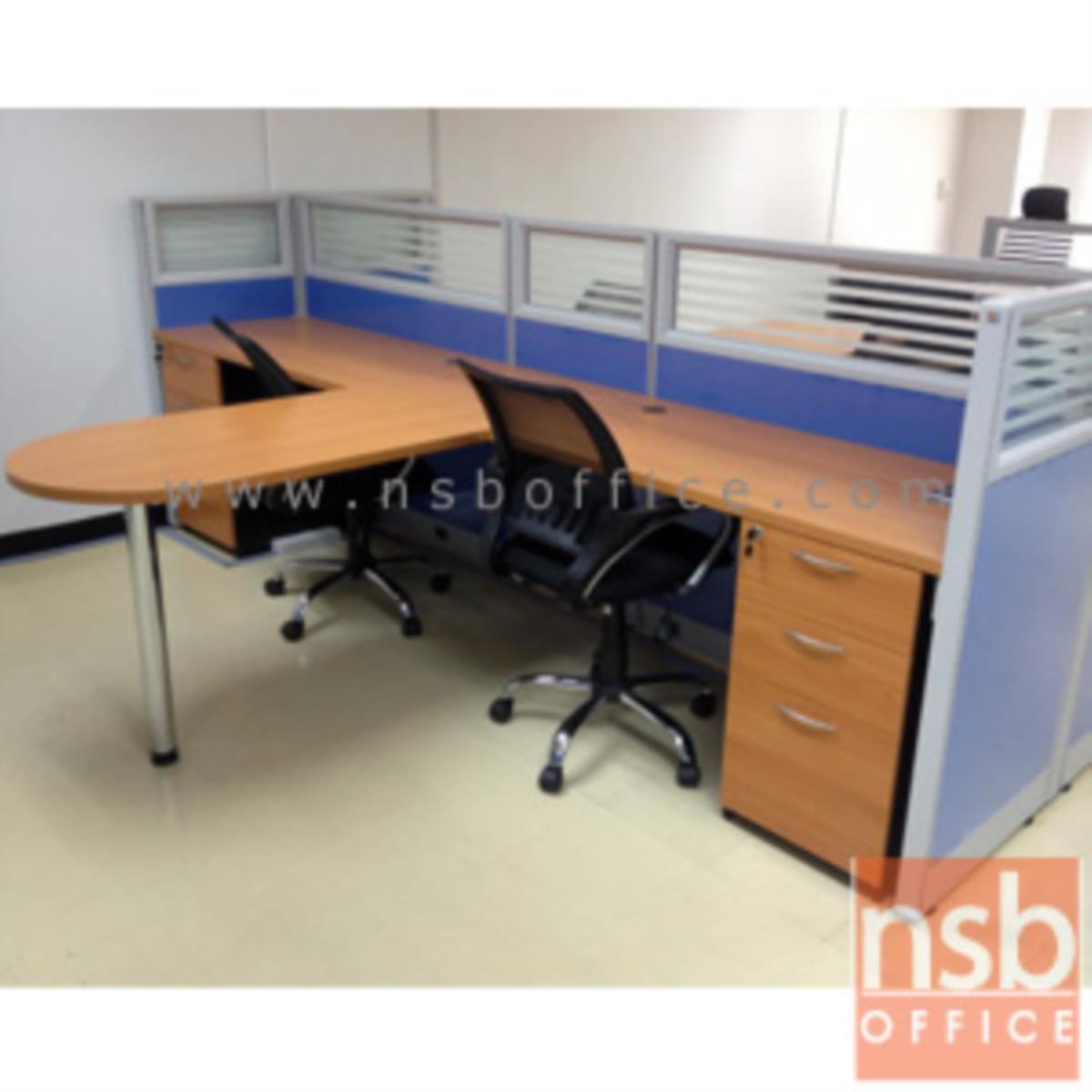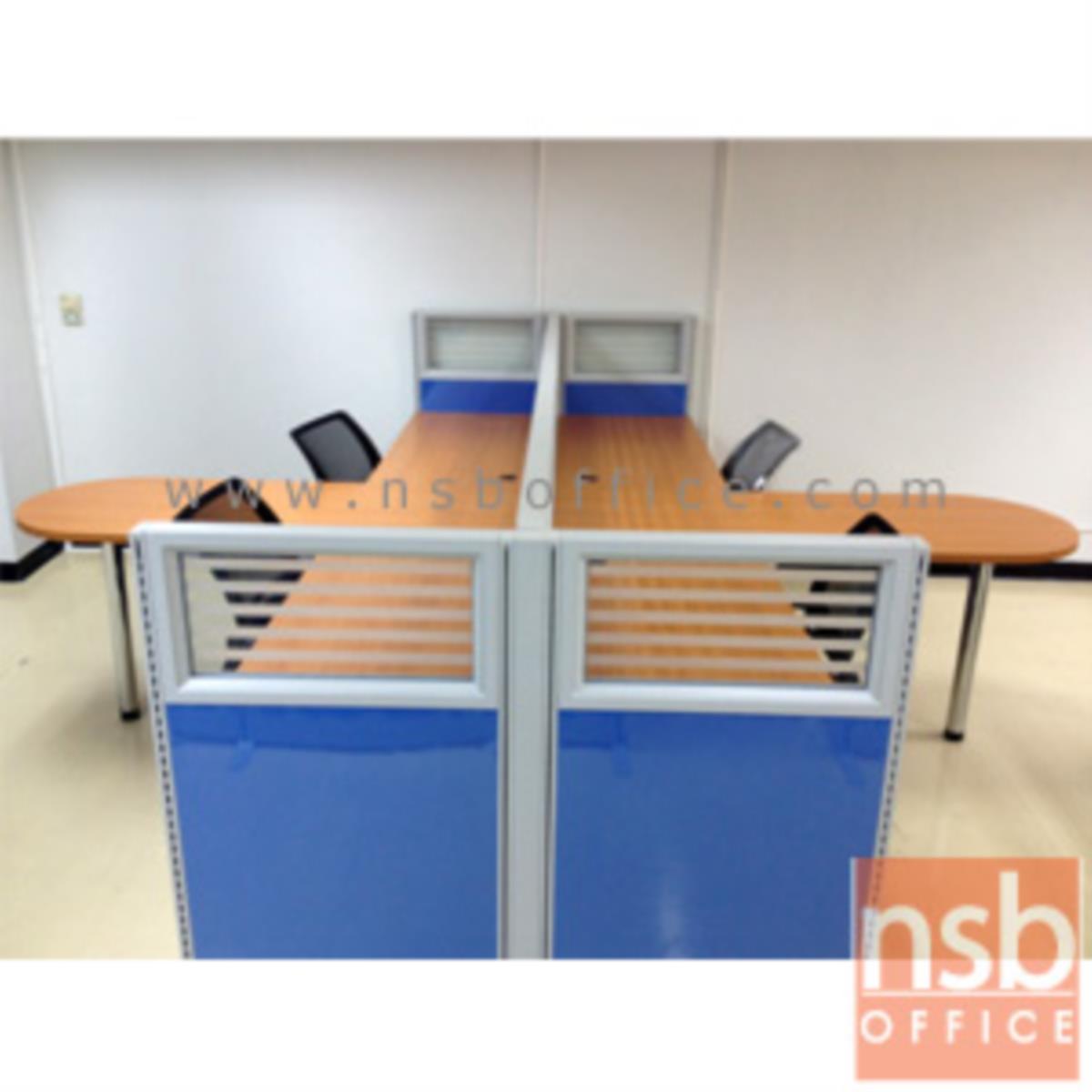 A04A036: ชุดโต๊ะทำงานกลุ่ม 4 ที่นั่ง โต๊ะหัวโค้งต่อกลาง ขนาด 310W cm. พร้อมพาร์ทิชั่น Hybrid