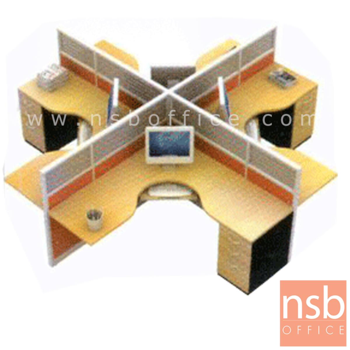 A04A041: ชุดโต๊ะทำงานกลุ่มตัวแอล 4 ทีนั่ง ขนาดรวม 328W cm. พร้อมพาร์ทิชั่น Hybrid