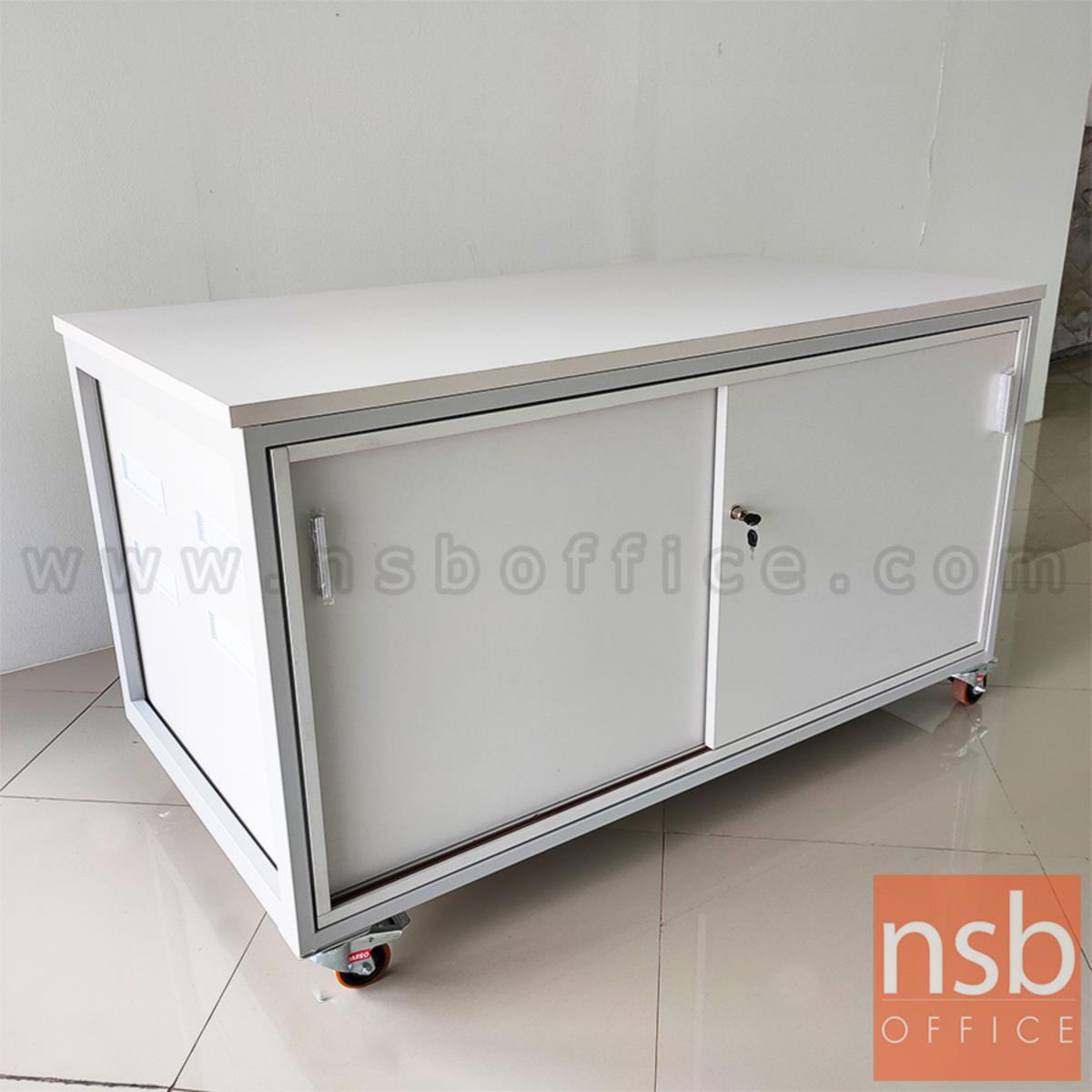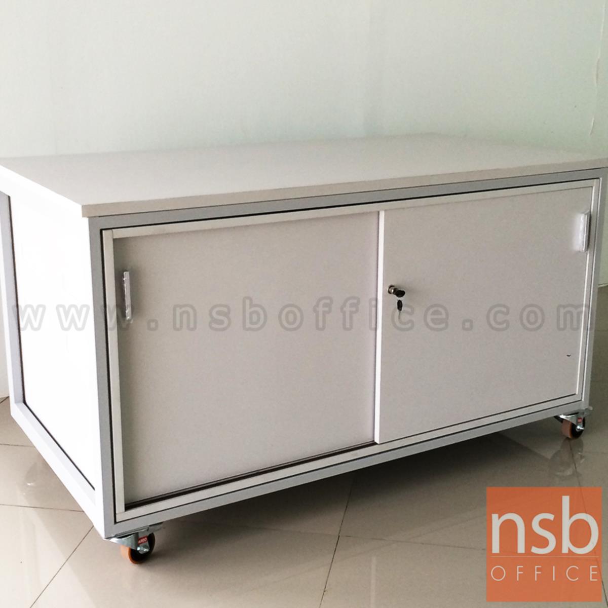 C12A017: ตู้แลปเก็บอุปกรณ์ บานเลื่อน รุ่น Scenery (ซีนเนอรี่) top HPL ขนาด 150W*80D cm. ล้อเลื่อน