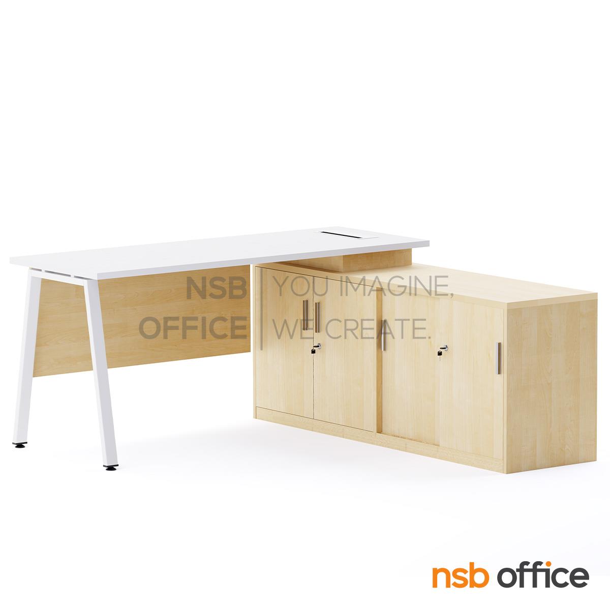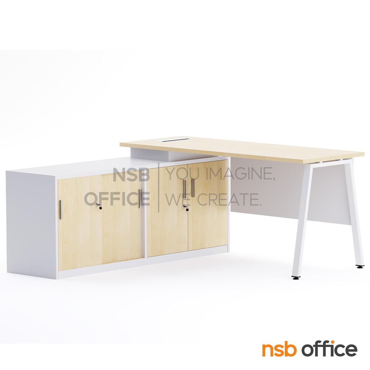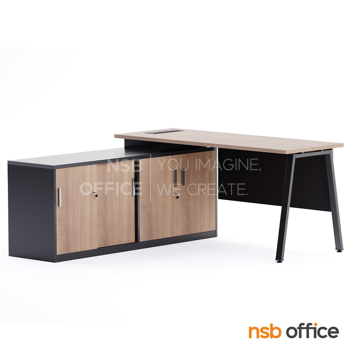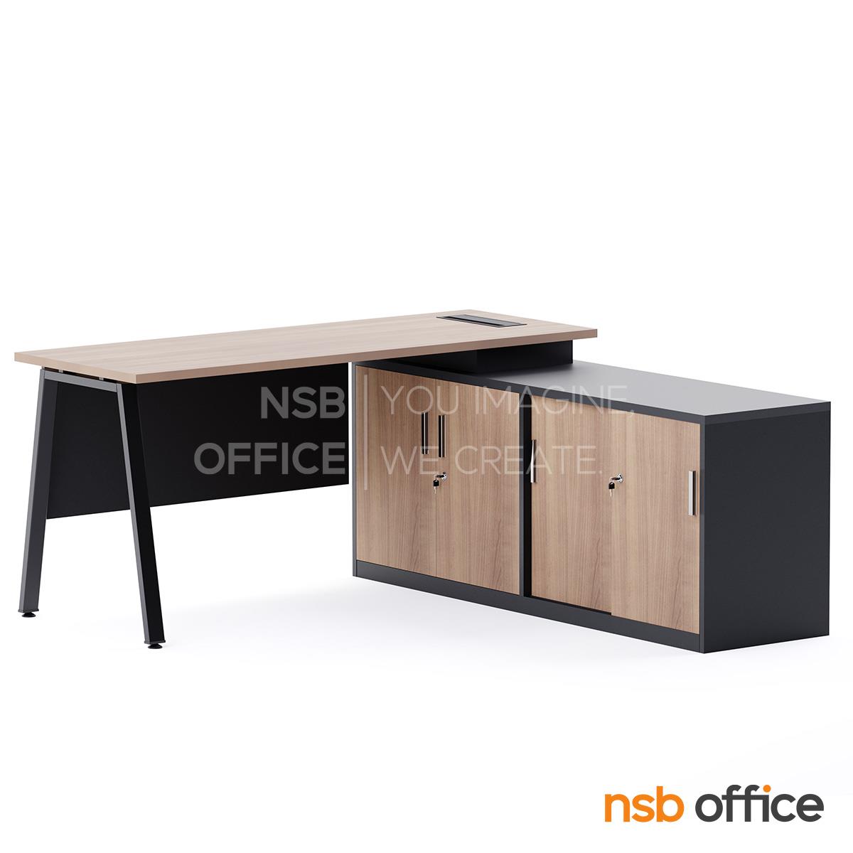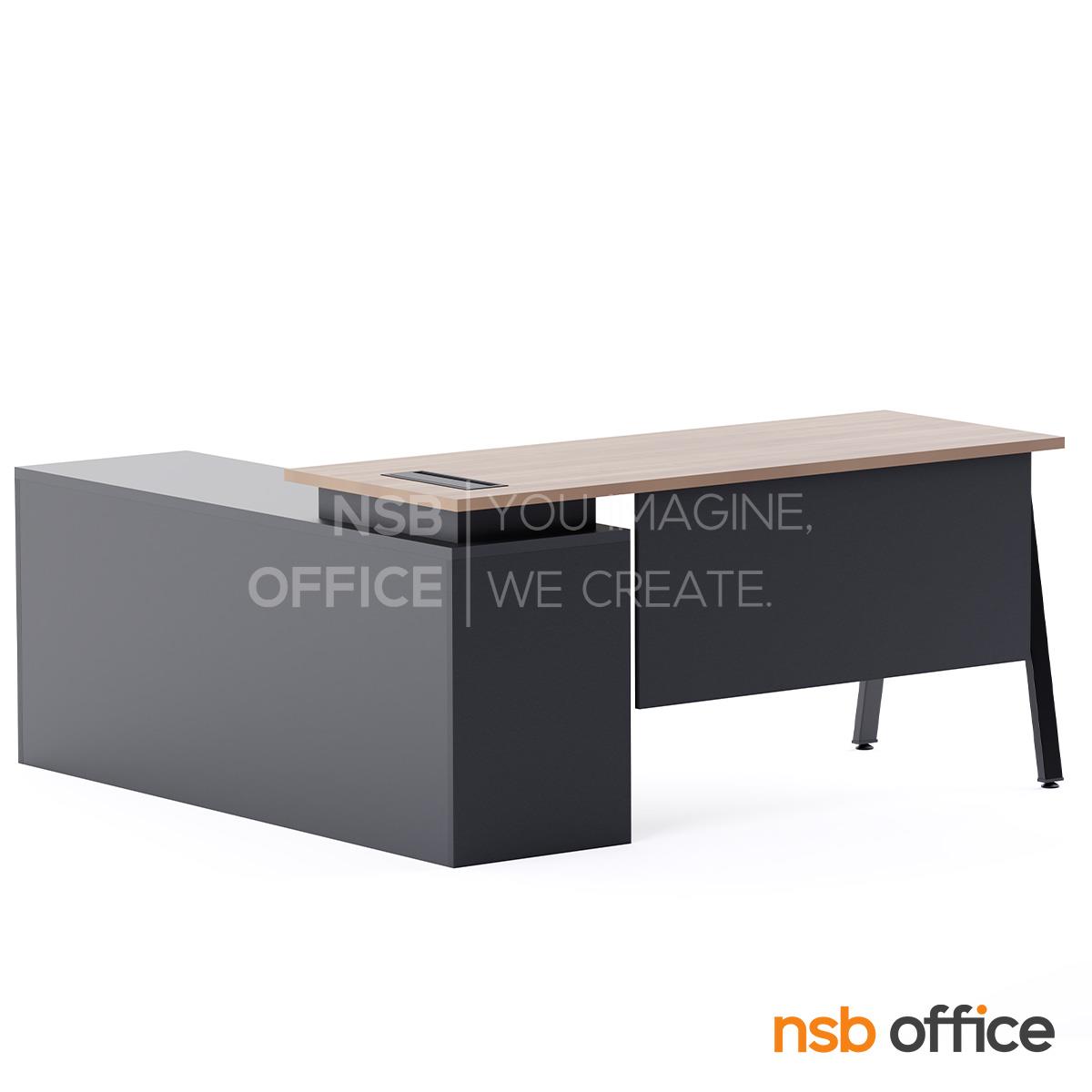A30A034: โต๊ะผู้บริหารตัวแอล รุ่น Slash-6 (สแลช-6) ขนาด 160W, 180W cm. พร้อมตู้ข้างและรางไฟรุ่น A24A034-1 ขาเหล็ก