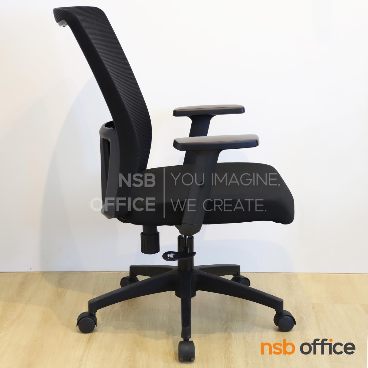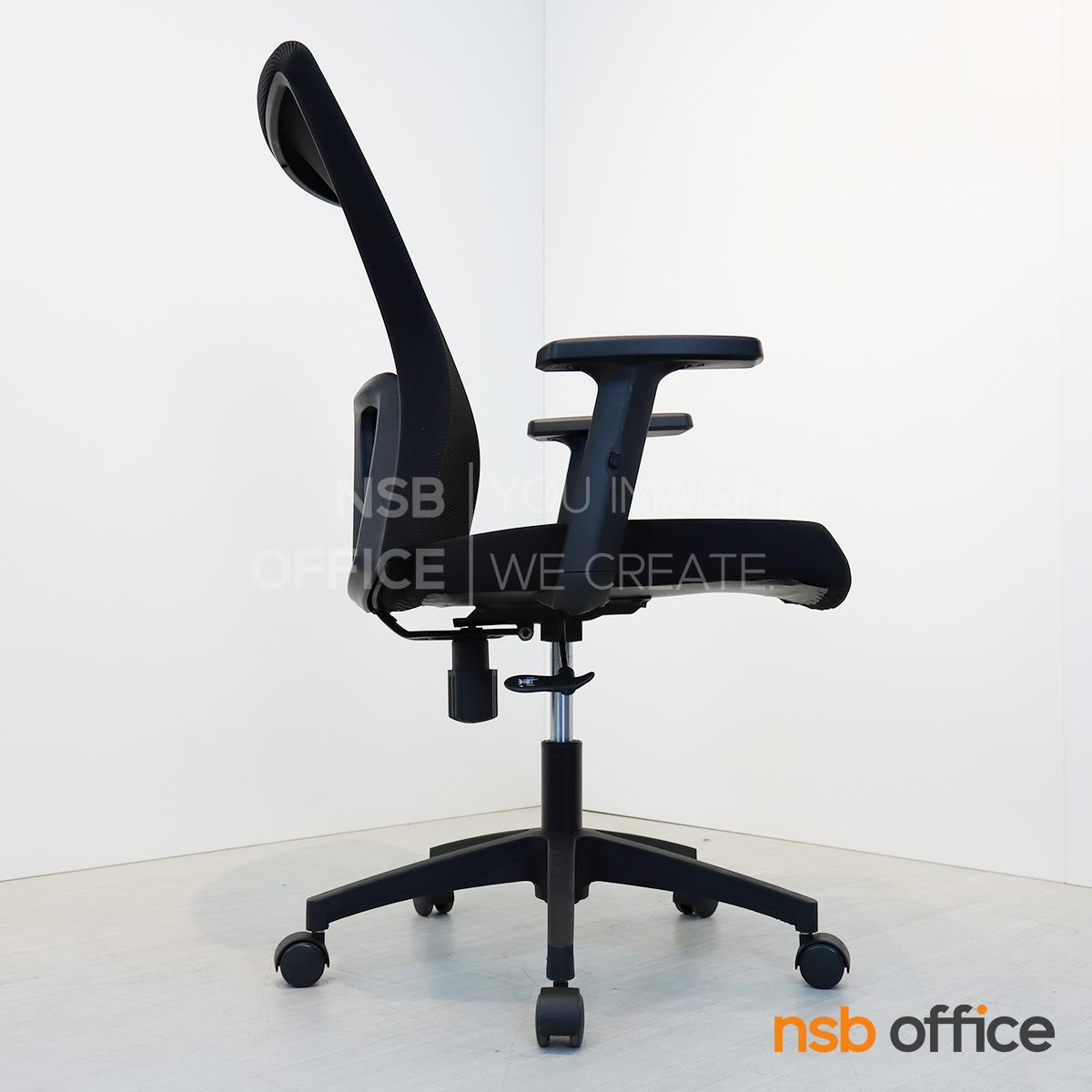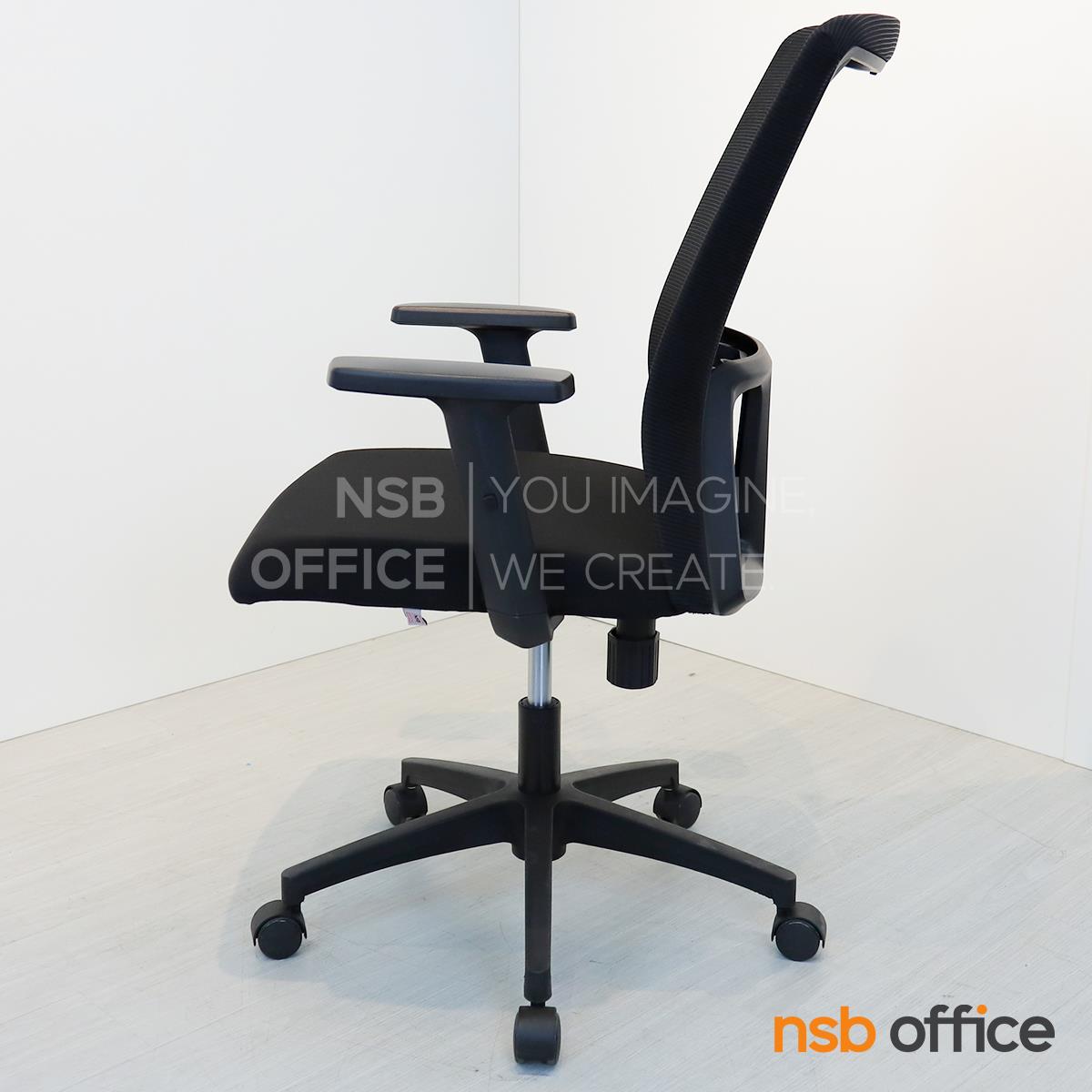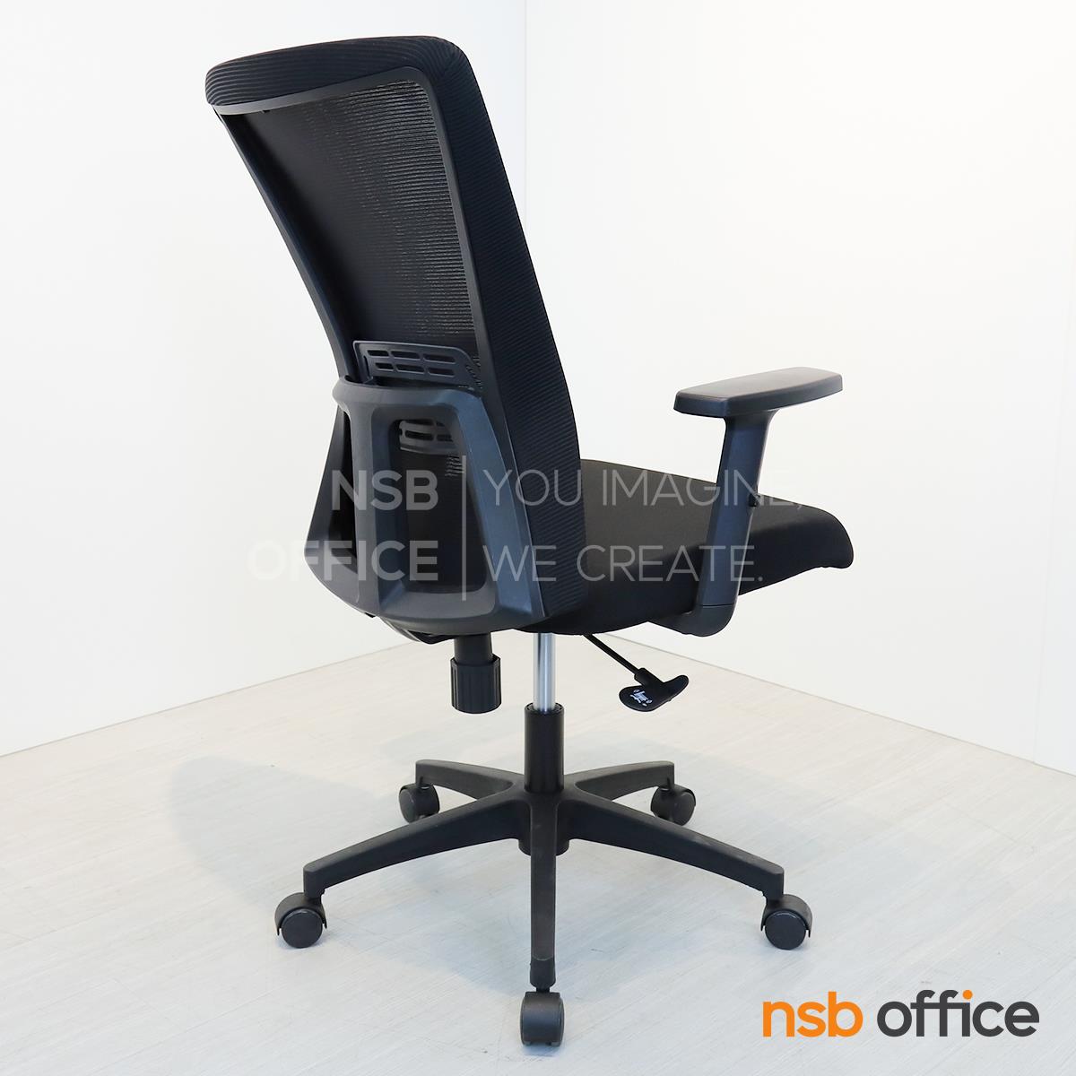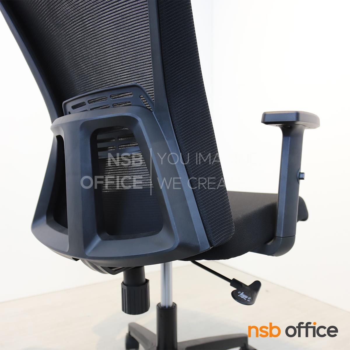 พนักพิงผลิตจากผ้าตาข่าย (Mesh) คุณสมบัติระบายอากาศได้ดี ลดความร้อนสะสมขณะใช้งาน พร้อมโครงสร้างรองรับแผ่นหลังเพื่อความสบายและรองรับสรีระในการนั่งทำงานระยะยาว