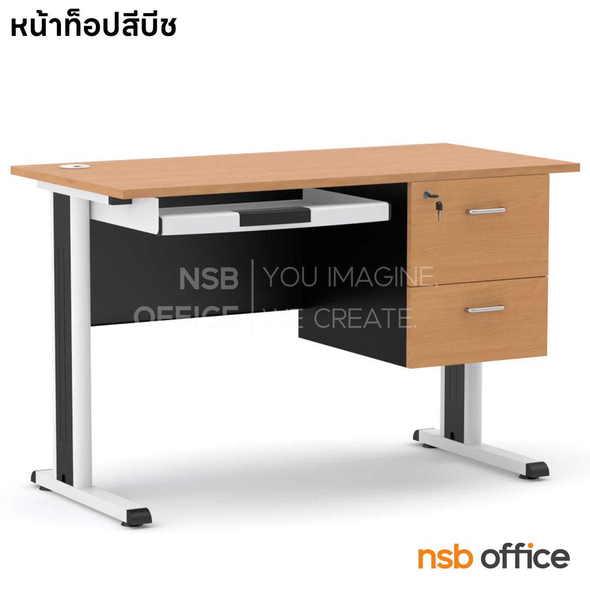 A10A020: โต๊ะคอมพิวเตอร์ 2 ลิ้นชัก รุ่น Dhara (ดาห์ร่า) ขนาด 120W cm. พร้อมรางคีย์บอร์ด ระบบรางลูกปืน ขาเหล็ก