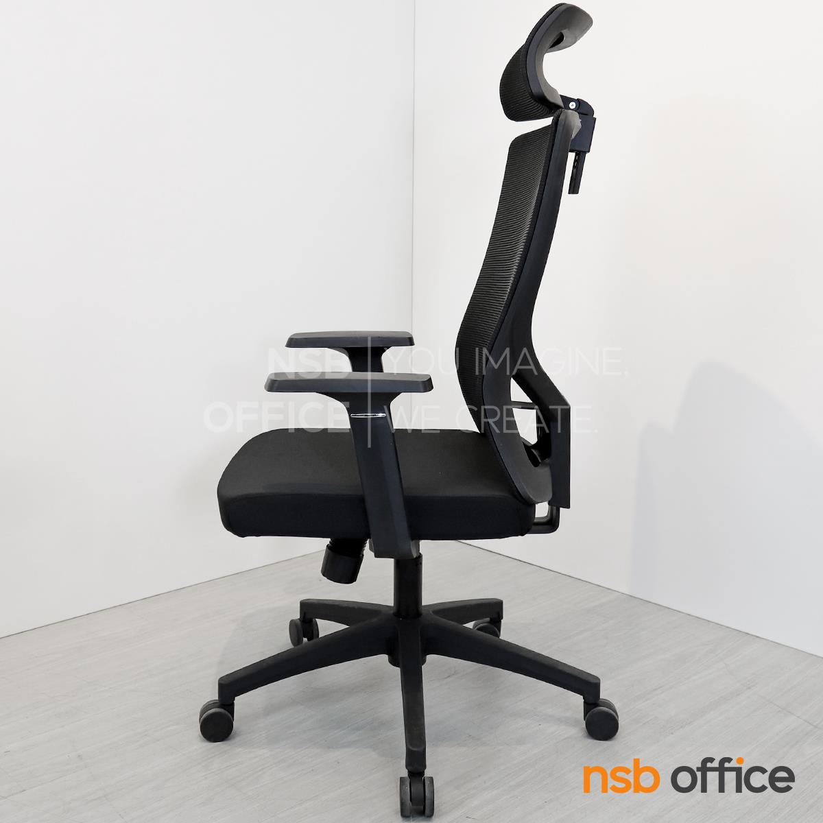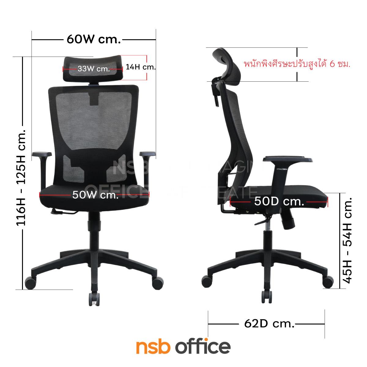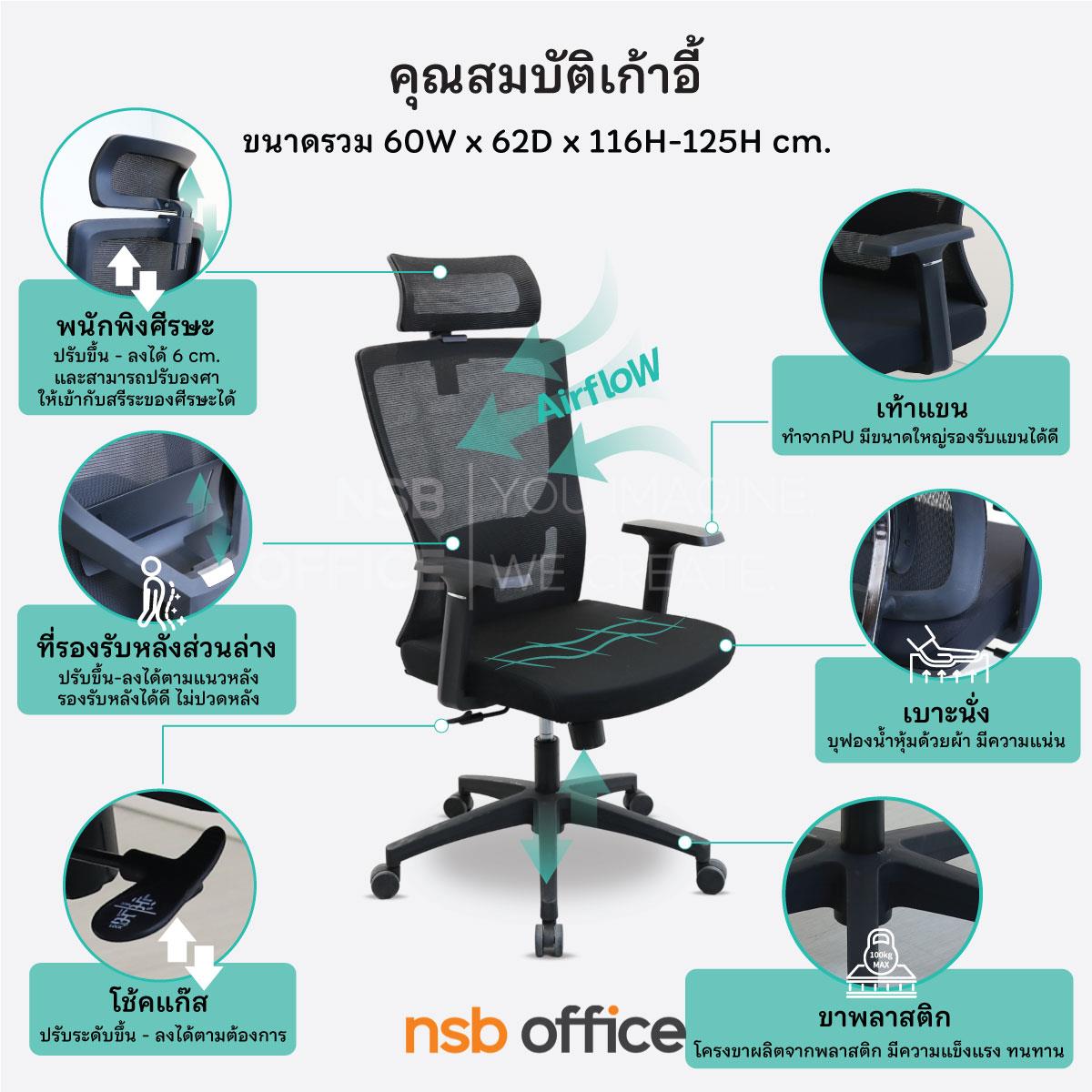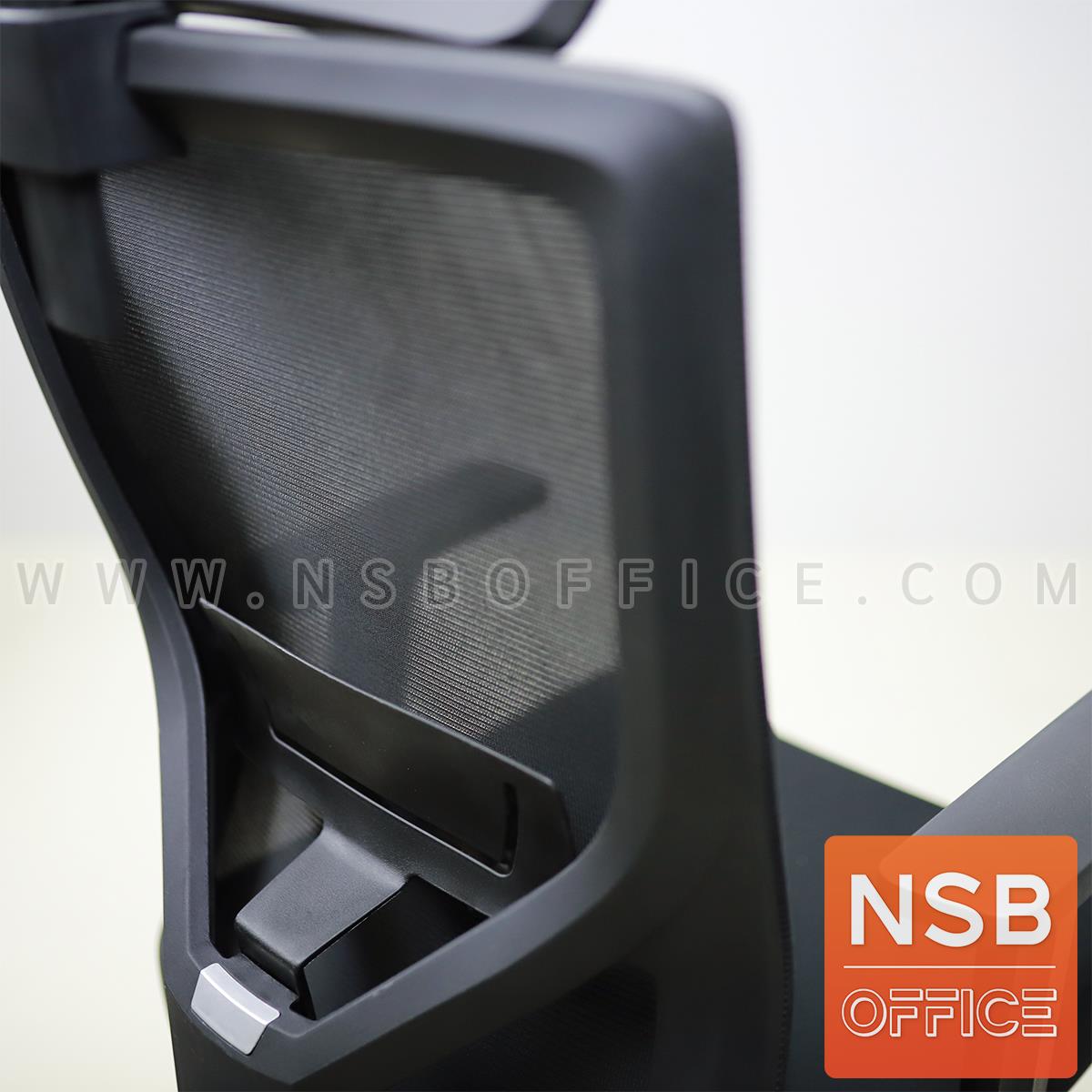 พนักพิงผลิตจากผ้าตาข่าย (Mesh) คุณสมบัติระบายอากาศได้ดี ลดความร้อนสะสมขณะใช้งาน พร้อมโครงสร้างรองรับแผ่นหลังเพื่อความสบายและรองรับสรีระในการนั่งทำงานระยะยาว