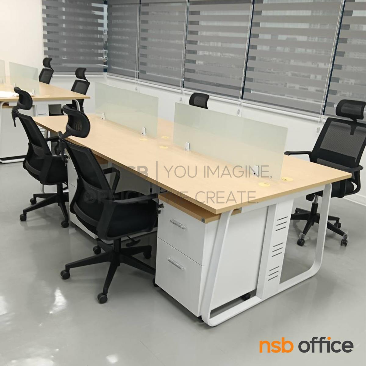A27A049: ชุดโต๊ะทำงานกลุ่มขาเหล็ก รุ่น Lenka 2 (เล็งกา 2) ขนาด 240W, 360W cm พร้อมมินิสกรีนและตู้ลิ้นชักไม้ล้อเลื่อน