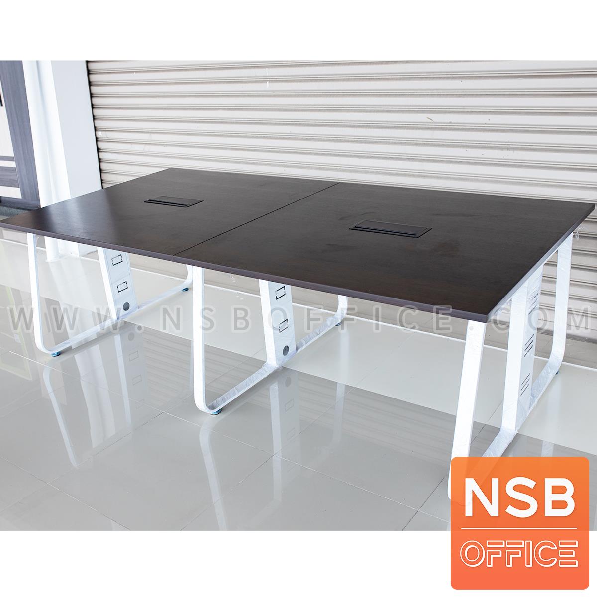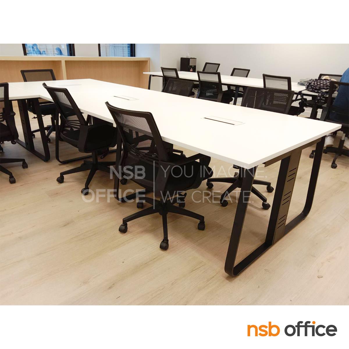A05A226: โต๊ะประชุมสี่เหลี่ยม รุ่น Trinity (ทรินิตี้) พร้อมป็อปอัพ A24A027 รางไฟใต้โต๊ะ ขาเหล็ก