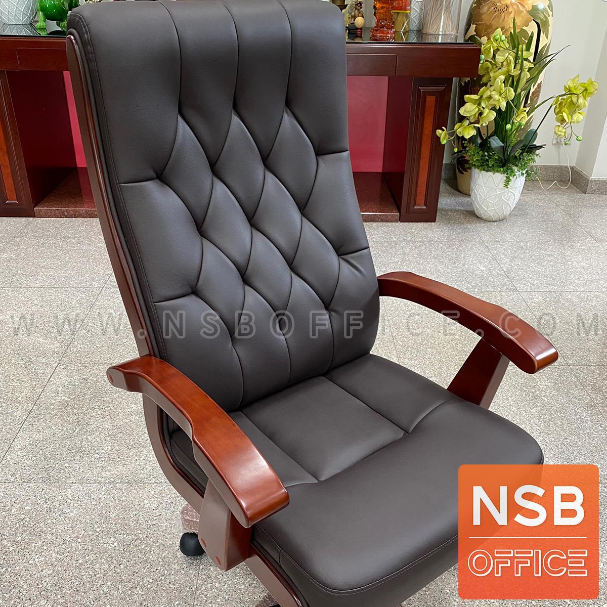 B25A151: เก้าอี้ผู้บริหารหุ้มหนัง แขนไม้ล้วน รุ่น Rainier (เรนเนียร์) เฟรมข้างพนังพิงไม้