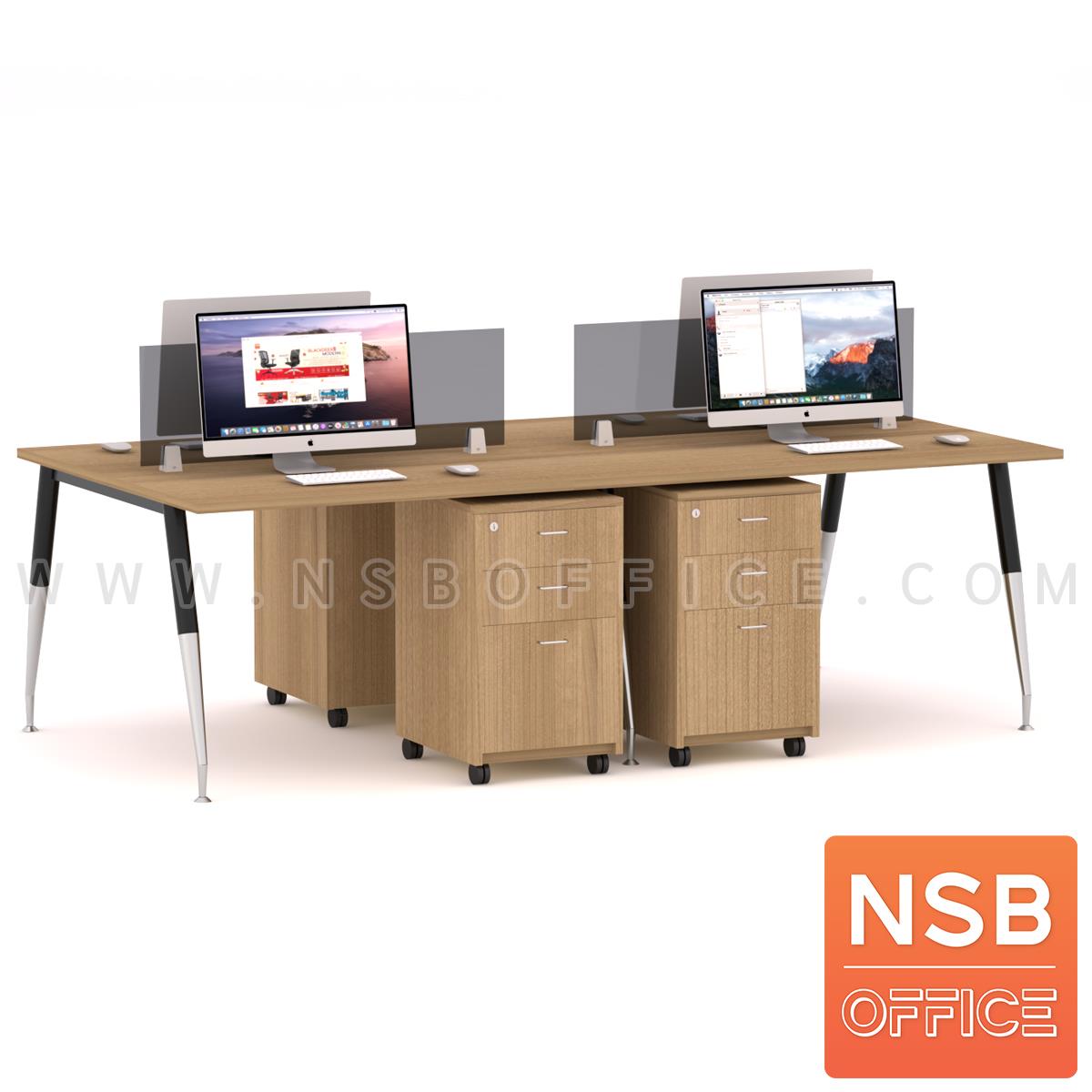 : ชุดโต๊ะทำงานกลุ่ม 4 ที่นั่ง รุ่น Panettone ll (พาเน็ตโทน 2) ขนาด 240W*120D*75H cm. ขาเหล็กสีดำ-โครเมี่ยม พร้อมมินิสกรีนและตู้ลิ้นชักไม้ล้อเลื่อน
