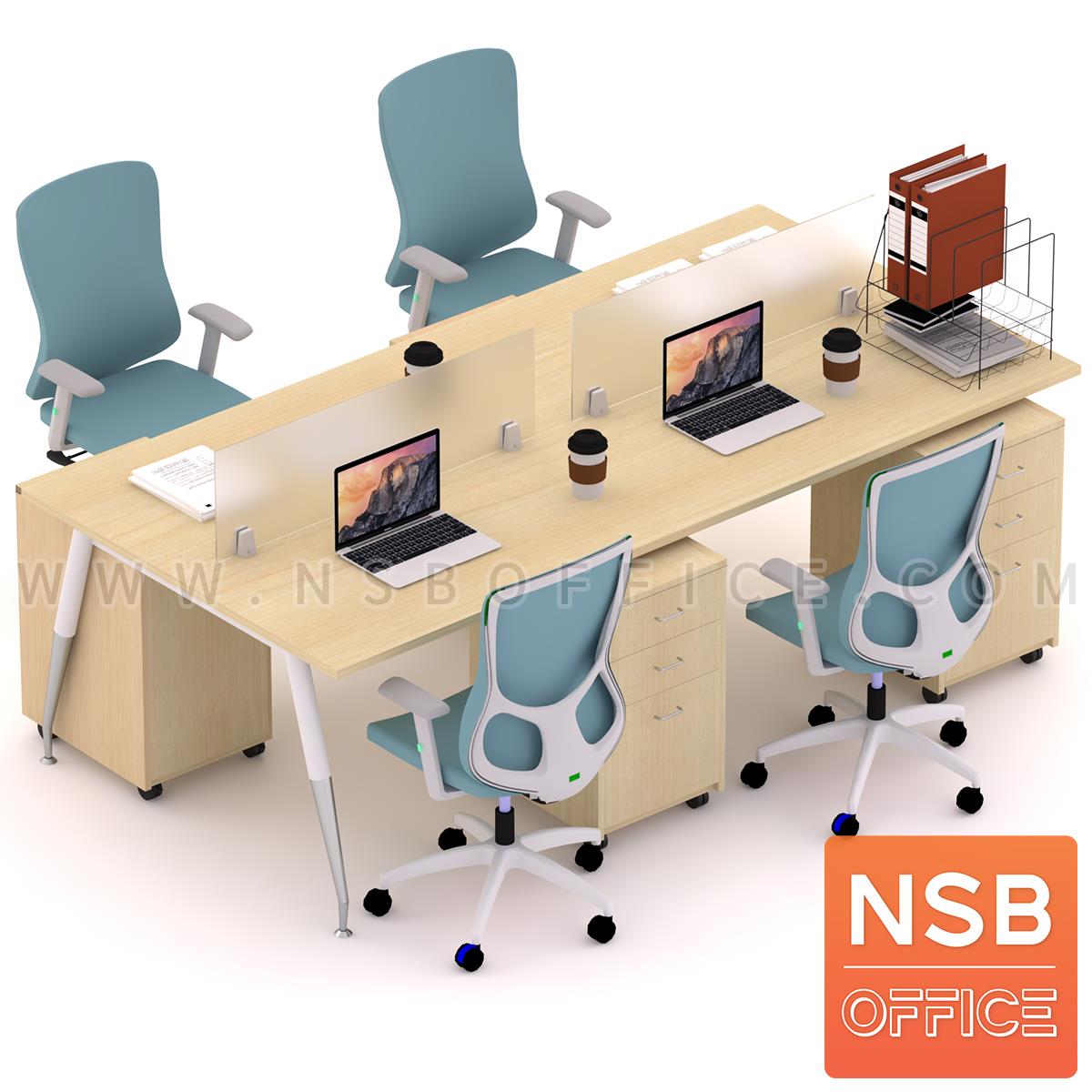 A27A056: ชุดโต๊ะทำงานกลุ่ม 4 ที่นั่ง รุ่น Panettone ll (พาเน็ตโทน 2) ขนาด 240W*120D cm. พร้อมมินิสกรีนและตู้ลิ้นชักไม้ล้อเลื่อน