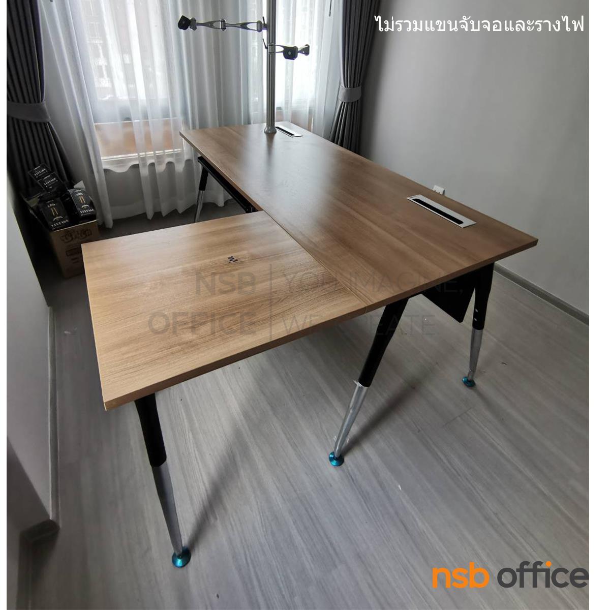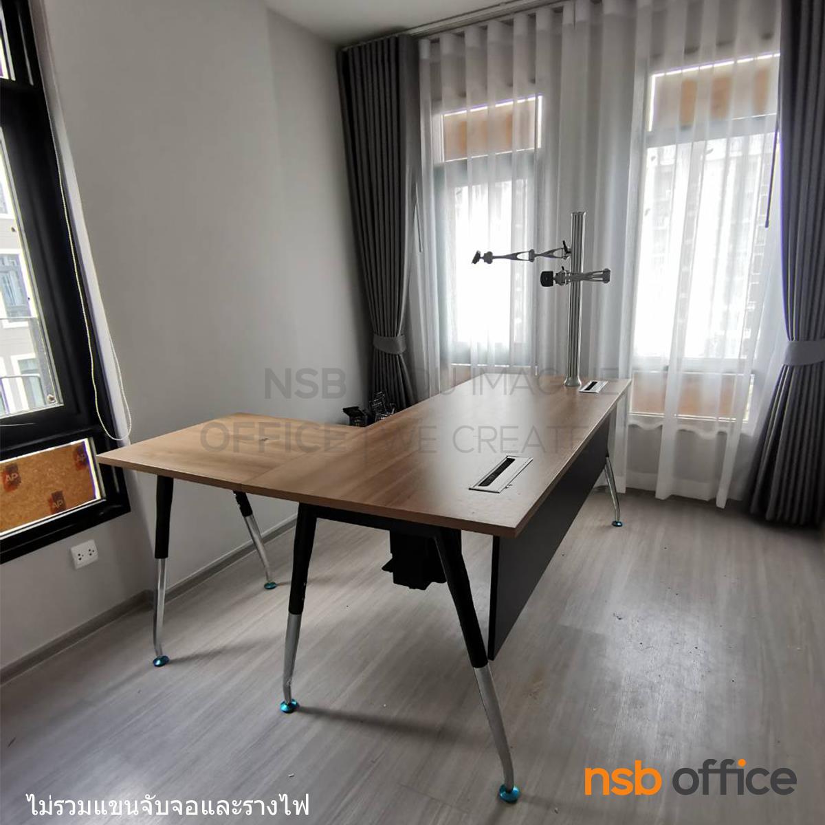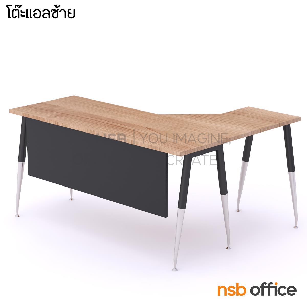 : โต๊ะทำงานตัวแอล รุ่น Moonrise (มูนไรซ์) ขนาด 180W1*120W2 cm. ขาเหล็กปลายเรียว บังตาไม้