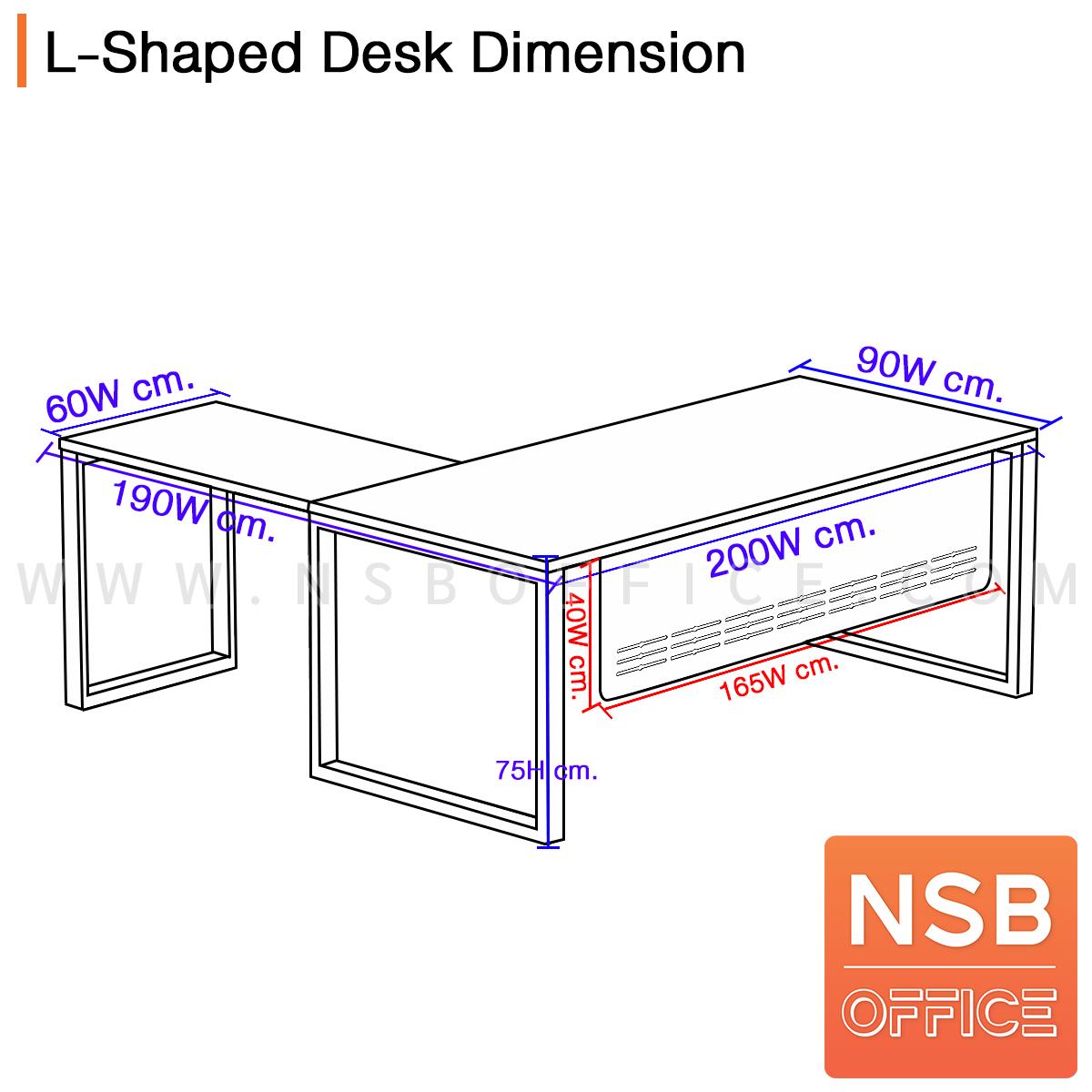 : โต๊ะทำงานผู้บริหารตัวแอล รุ่น Henery (เฮนเนอรี) ขนาด 200W1*190W2 cm. บังตาเหล็ก
