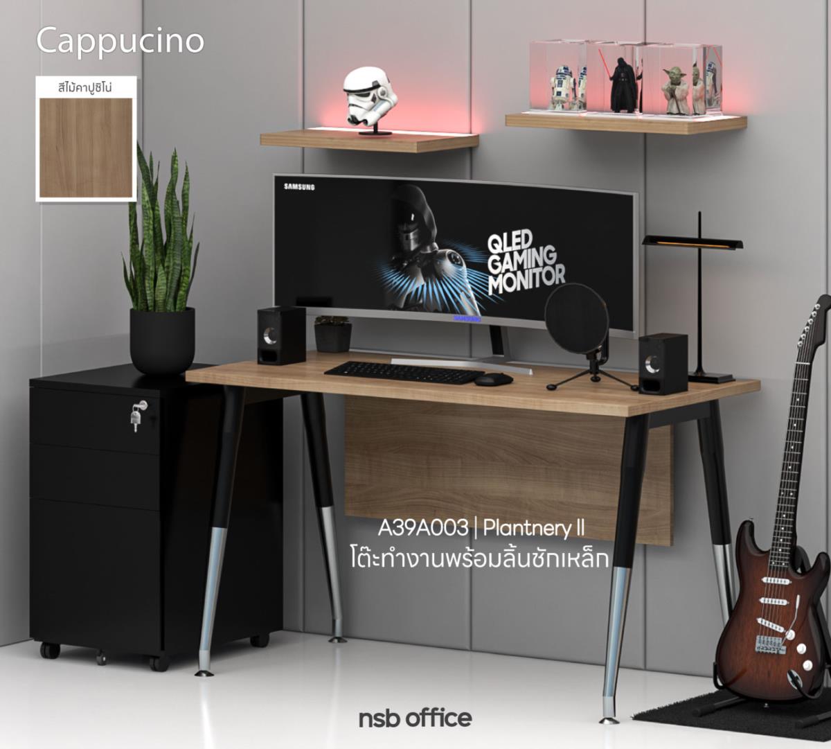 A39A003: โต๊ะทำงานพร้อมลิ้นชักเหล็กล้อเลื่อน รุ่น Plantnery 2 (แพลนเนอรี่ 2) ขนาด 120W cm. มีบังตา ขาเหล็ก