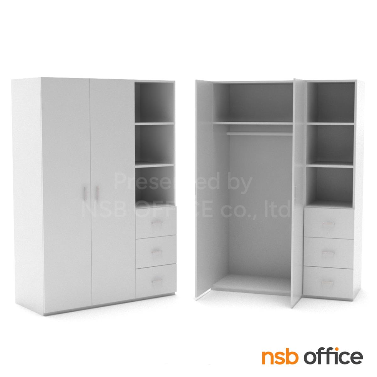G12A281: ตู้เสื้อผ้าไม้ 2 บานเปิด 3 ลิ้นชัก รุ่น Honeywell (ฮันนี่เวล) ขนาด 136W*60D *200H cm.