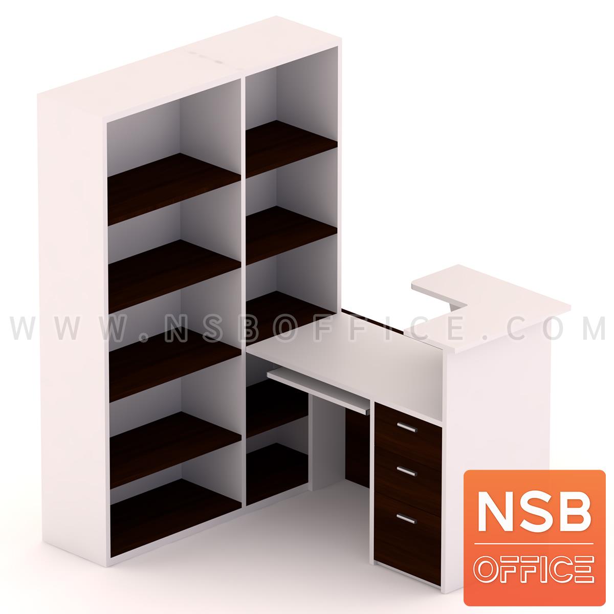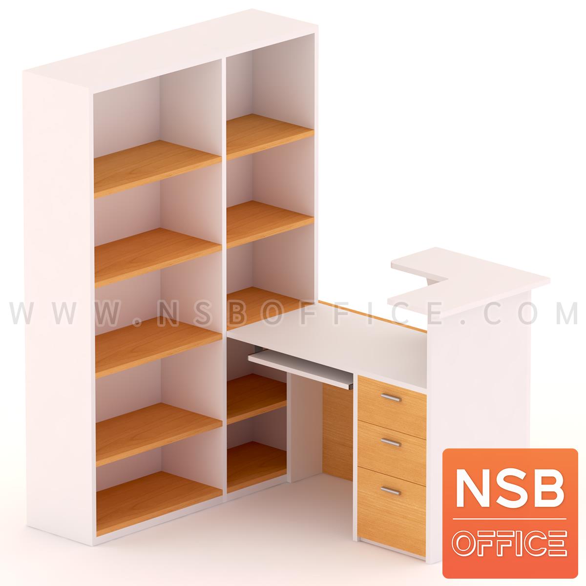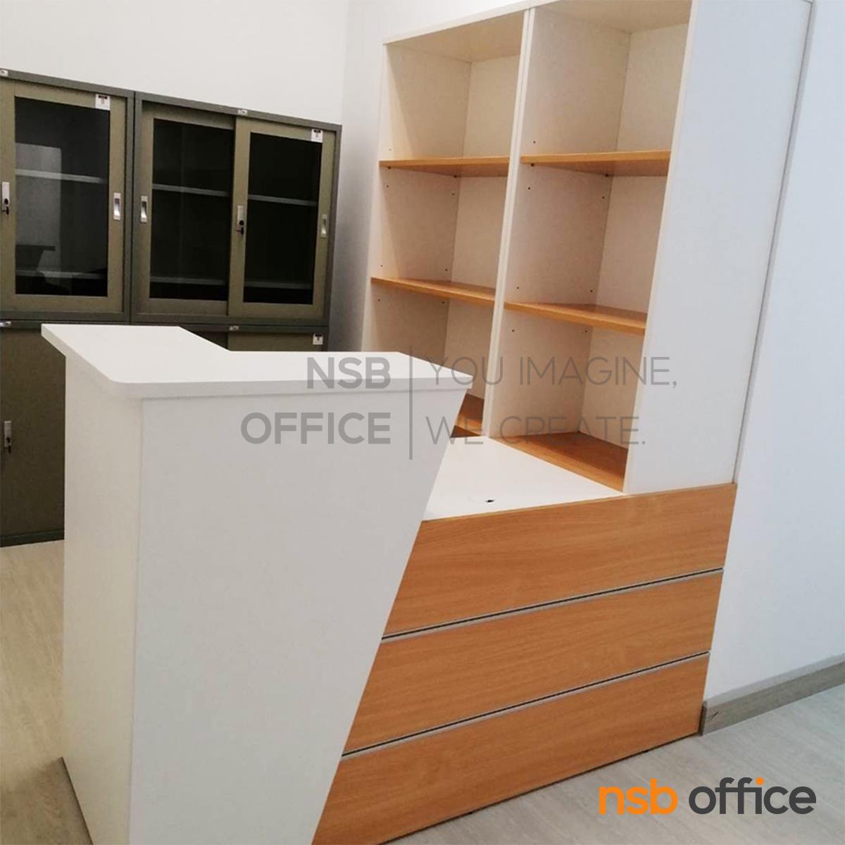 : เคาน์เตอร์ต้อนรับมีตู้เอกสารโล่งด้านข้าง รุ่น Whiteswan (ไวท์สวอน) ขนาด 190W cm. พร้อมรางคีย์บอร์ดและตู้ลิ้นชักข้าง