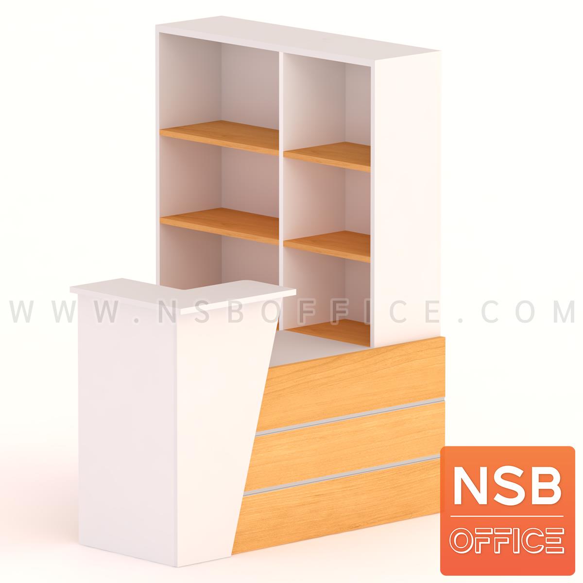 : เคาน์เตอร์ต้อนรับมีตู้เอกสารโล่งด้านข้าง รุ่น Whiteswan (ไวท์สวอน) ขนาด 220W cm. พร้อมรางคีย์บอร์ดและตู้ลิ้นชักข้าง