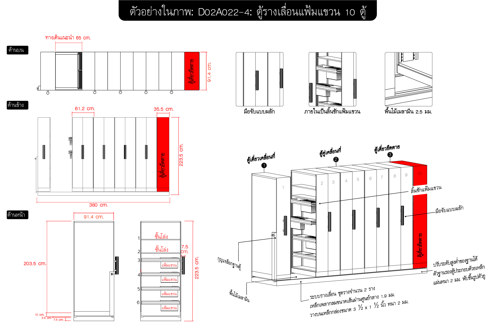 อธิบายขนาดตู้รางเลื่อน D02A022