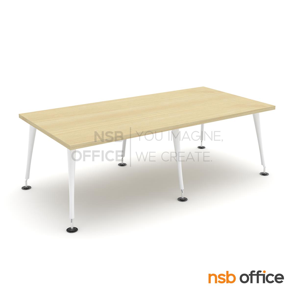 A05A232: โต๊ะประชุมทรงสี่เหลี่ยม รุ่น Maroon (มาร์รูน) ขนาด 240W*120D cm. ขาอลูมิเนียมทรงปลายเรียวสีขาว ปลายขาเหล็กชุบเงา