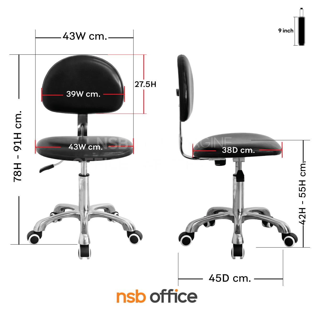 B02A105: เก้าอี้บาร์ ล้อเลื่อน รุ่น Tori (โทริ) หุ้มหนังเทียม ขาอลูมิเนียม