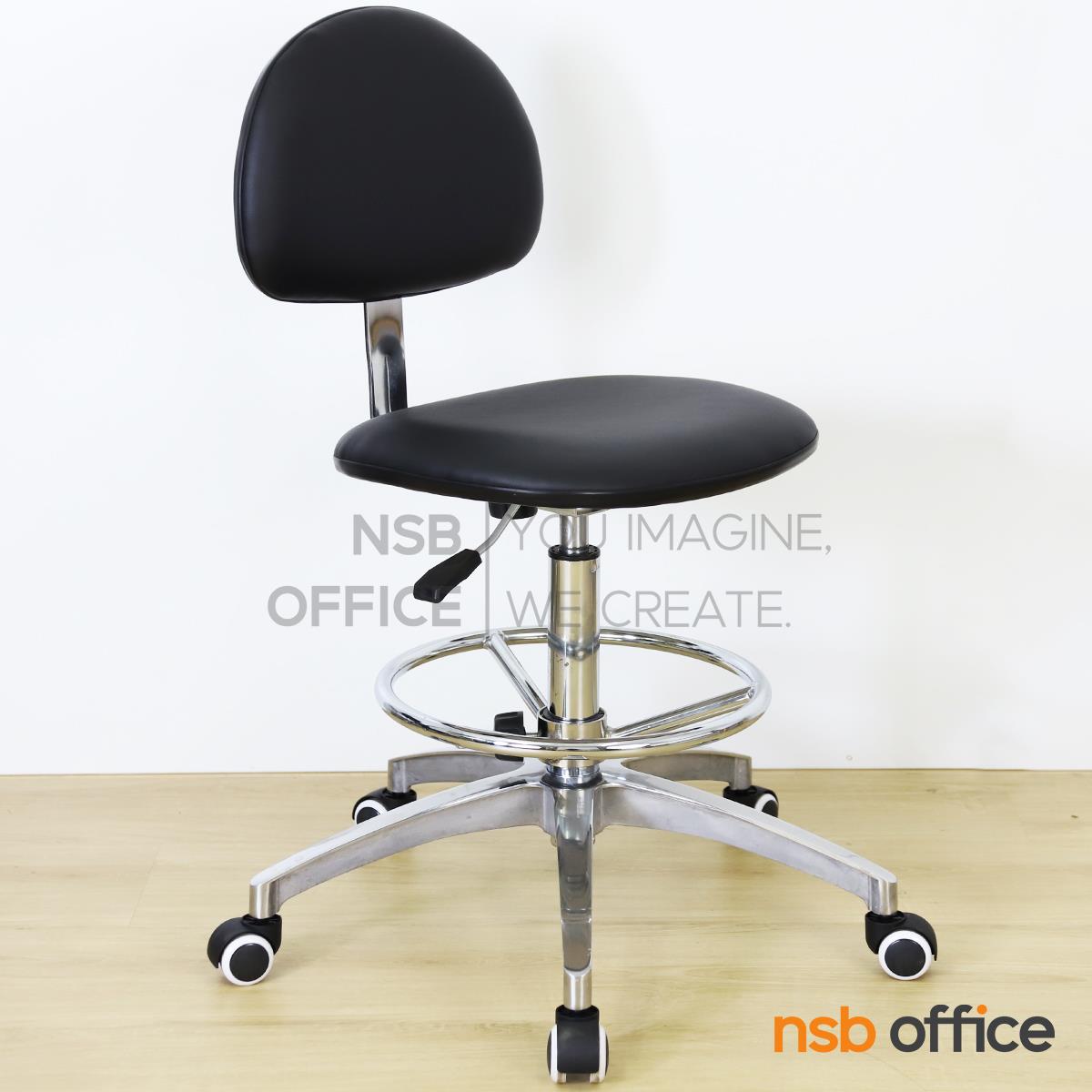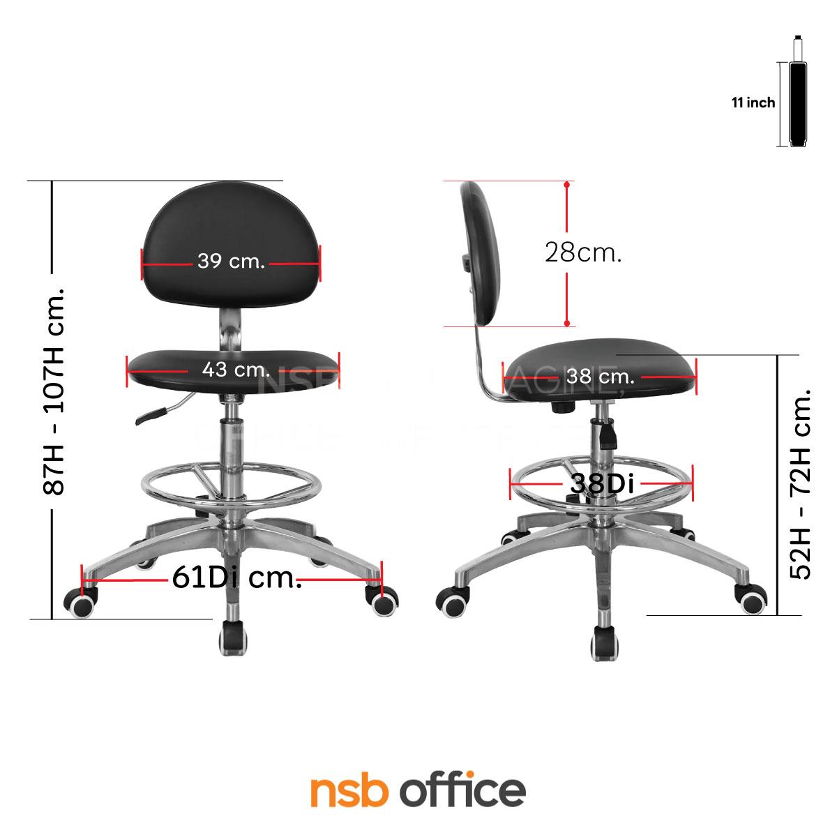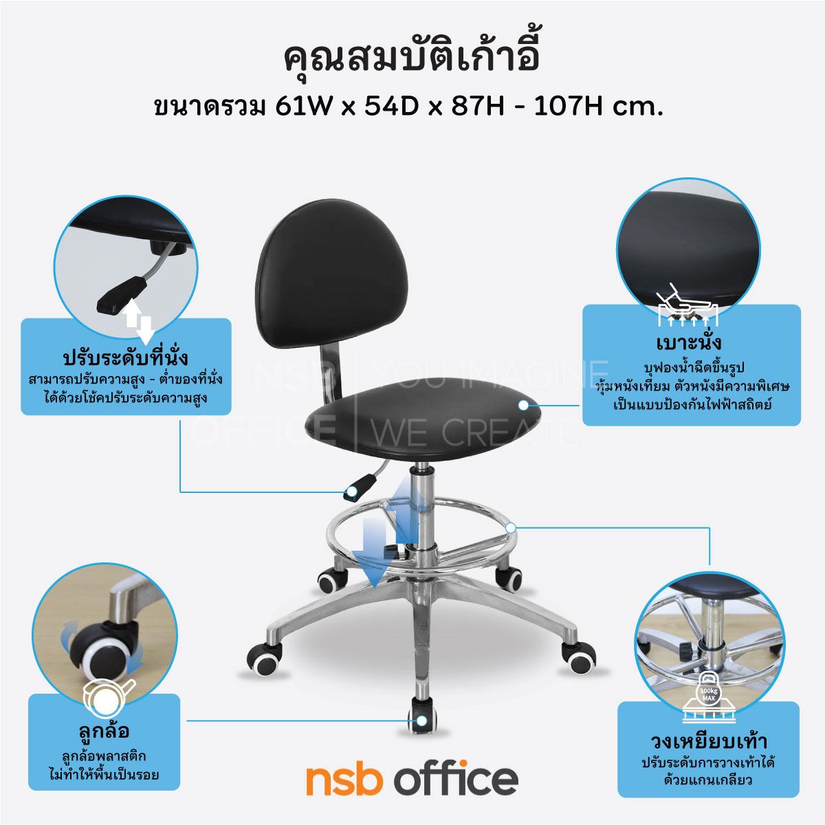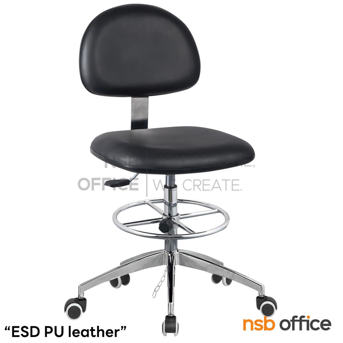 : เก้าอี้บาร์ที่นั่งเหลี่ยมล้อเลื่อน รุ่น Vernis (เวอร์นิส) ESD ป้องกันไฟฟ้าสถิต ขาอลูมิเนียม หนังดำ