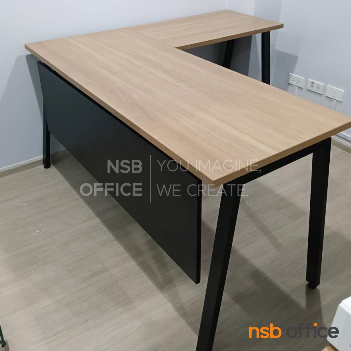 A16A087: โต๊ะทำงานตัวแอล รุ่น Helsingki (เฮลซิงกิ) ขนาด 150W1*140W2 cm. พร้อมบังตาไม้ ขาเหล็ก