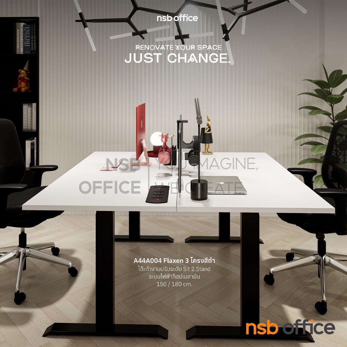 A44A004: โต๊ะทำงานปรับระดับ Sit 2 Stand ระบบไฟฟ้า รุ่น Flaxen 3 (แฟลกซ์เซ็น 3) ขนาด 150W, 180W cm. พร้อมป็อปอัพรุ่น A24A042 ขาเหล็กเหลี่ยม