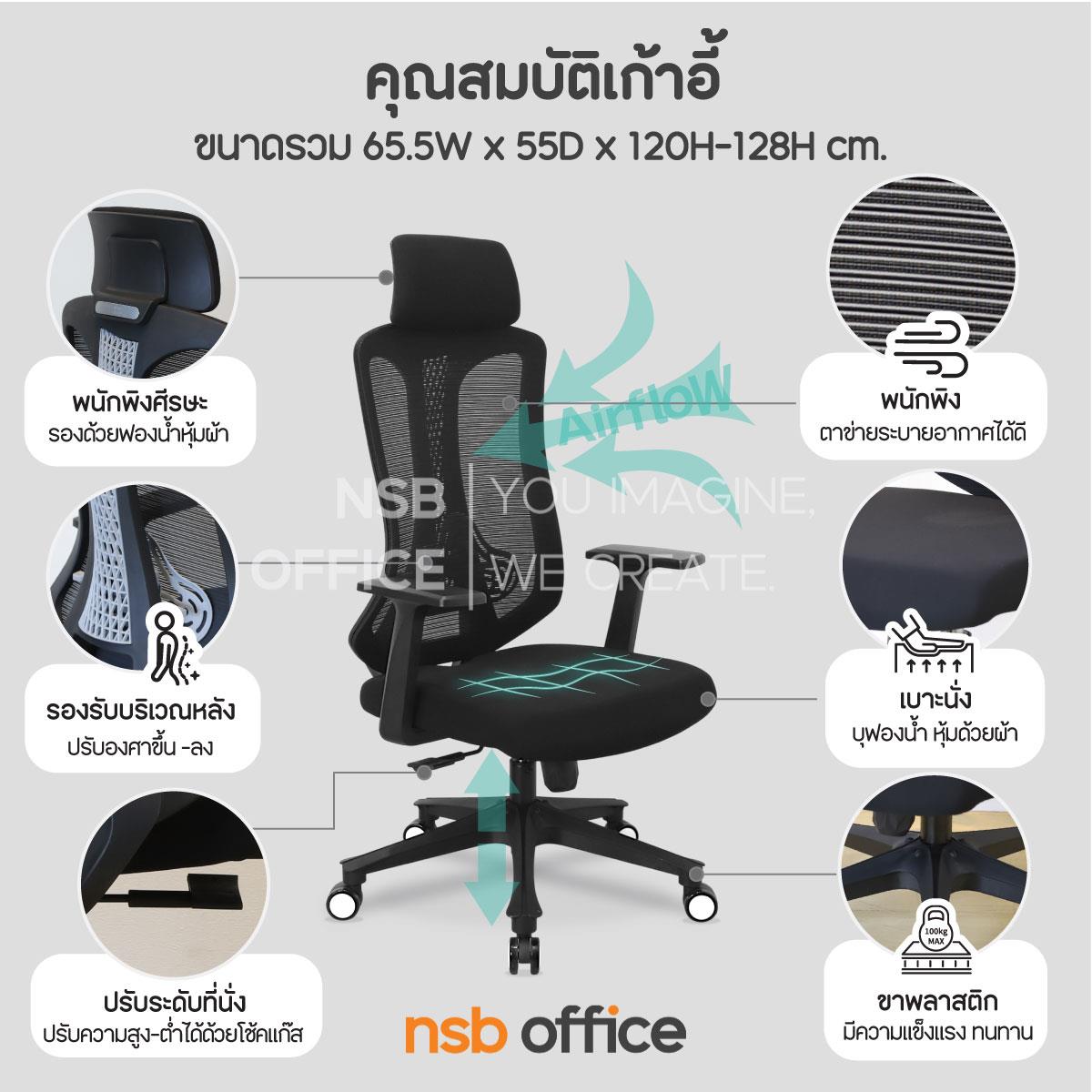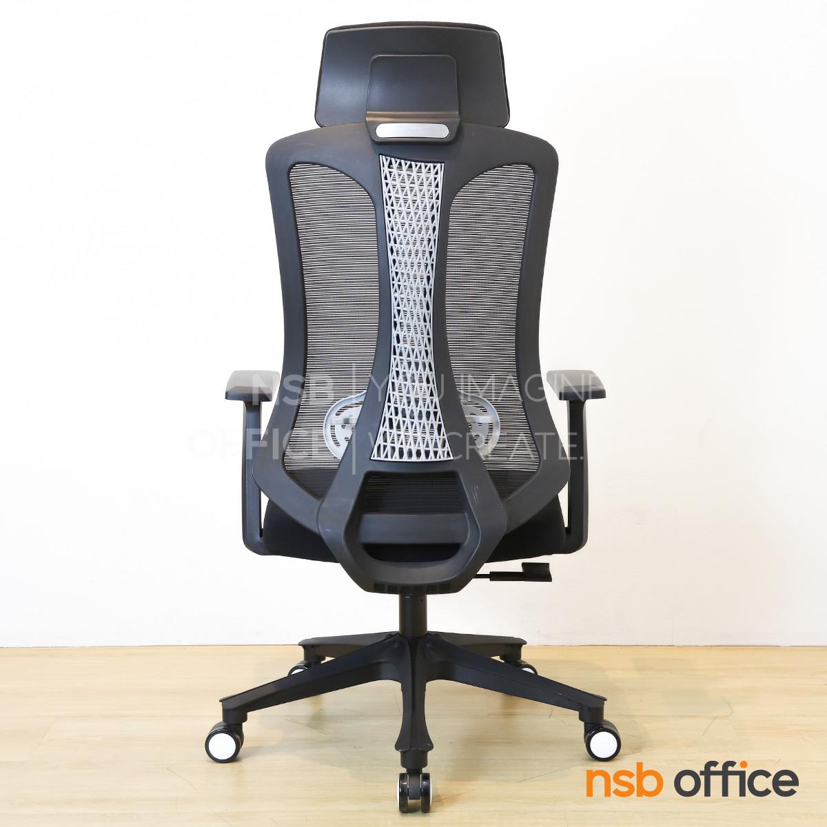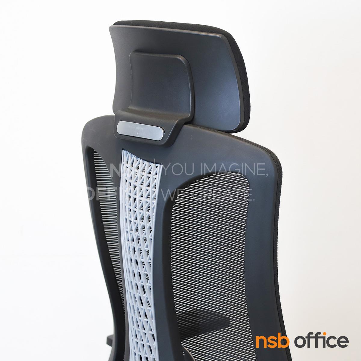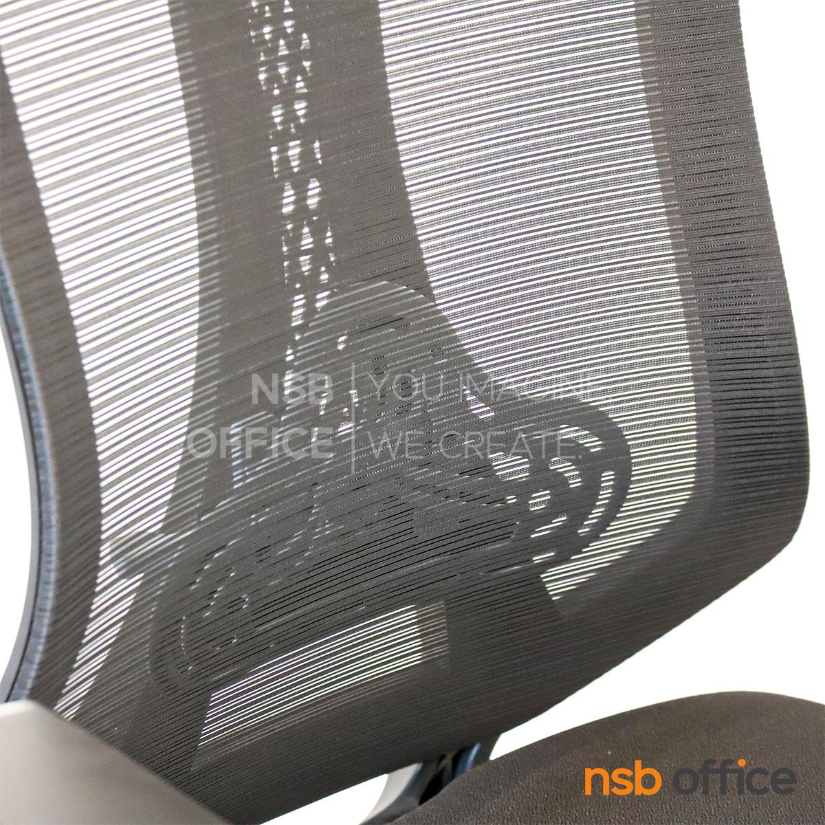 พนักพิงผลิตจากผ้าตาข่าย (Mesh) คุณสมบัติระบายอากาศได้ดี ลดความร้อนสะสมขณะใช้งาน พร้อมโครงสร้างรองรับแผ่นหลังเพื่อความสบายและรองรับสรีระในการนั่งทำงานระยะยาว