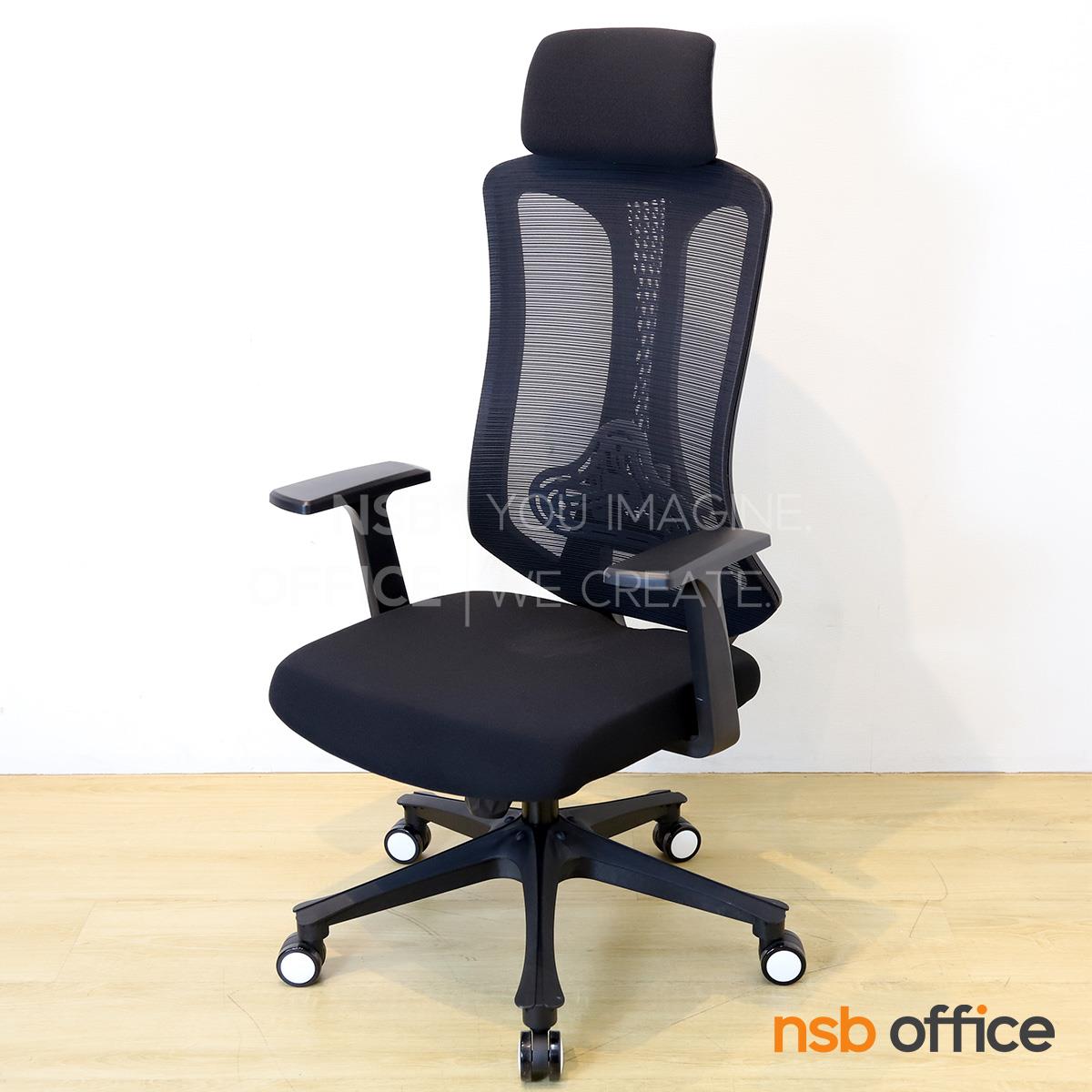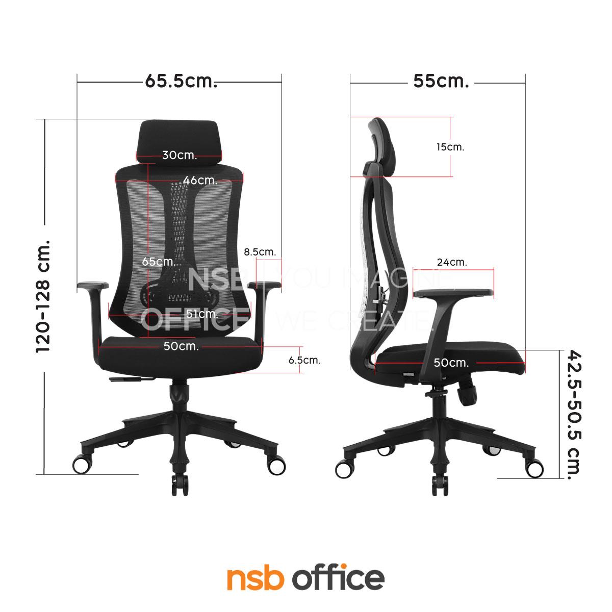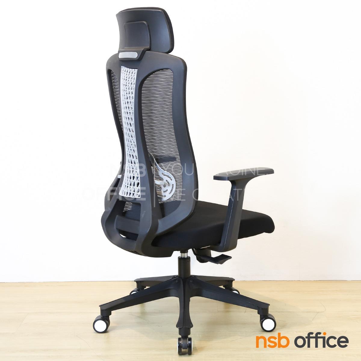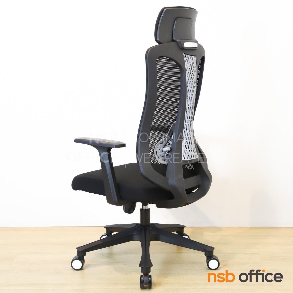 พนักพิงผลิตจากผ้าตาข่าย (Mesh) คุณสมบัติระบายอากาศได้ดี ลดความร้อนสะสมขณะใช้งาน พร้อมโครงสร้างรองรับแผ่นหลังเพื่อความสบายและรองรับสรีระในการนั่งทำงานระยะยาว