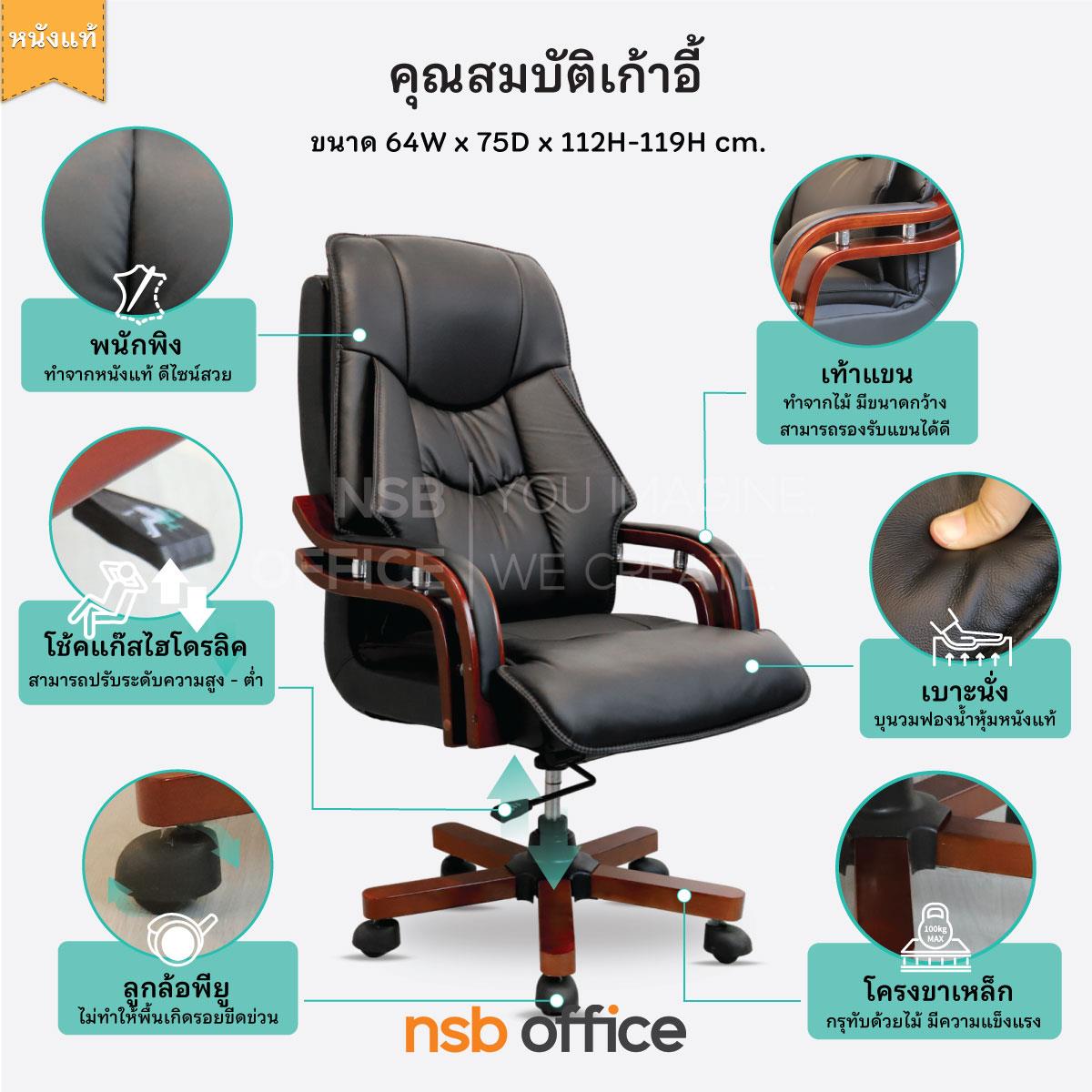 B25A159: เก้าอี้ผู้บริหารหนังแท้ แขนไม้ รุ่น Ordinary (ออร์ดิแนรี่)
