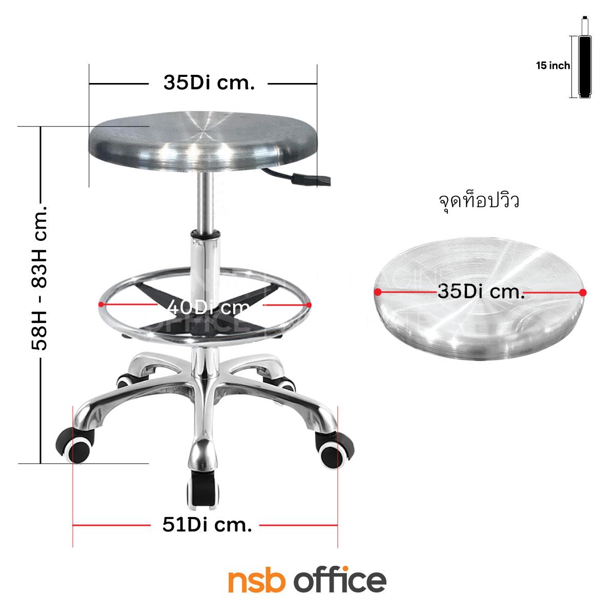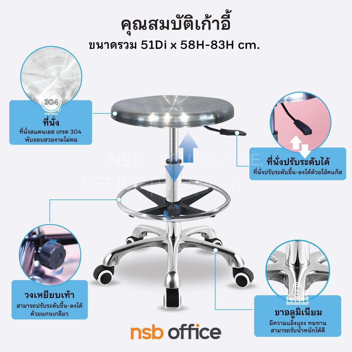 : เก้าอี้บาร์สตูลที่นั่งกลมสแตนเลส รุ่น Enjoy (เอนจอย) มีวงเหยียบ โช๊คแก๊ส ขาอลูมิเนียม