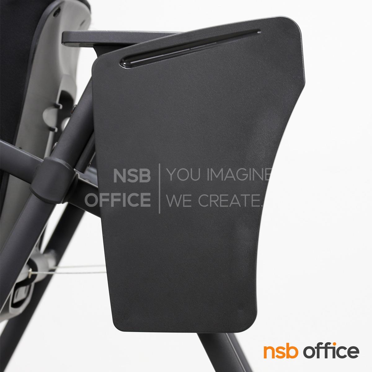 เท้าแขนแผ่นเลคเชอร์ของเก้าอี้อยู่ทางด้านขวา ออกแบบมาเพื่อการใช้งานสำหรับคนถนัดมือขวา