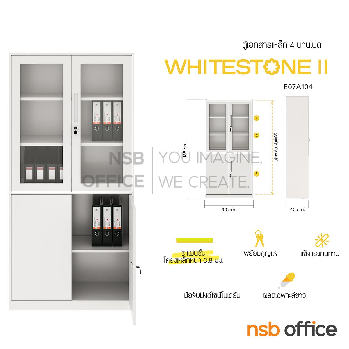 E07A104: ตู้เอกสารเหล็ก 4 บานเปิด รุ่น Whitestone ll ขนาด 90W*185H cm. หนาพิเศษ 0.8mm (ผลิตสีขาว)