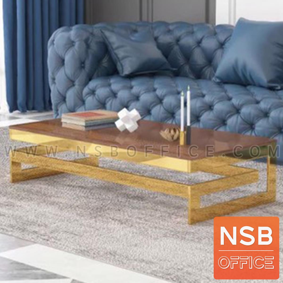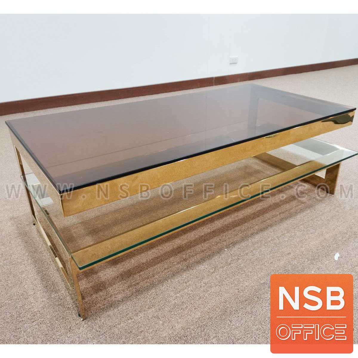 B13A315: โต๊ะกลางกระจกสีบรอนซ์ รุ่น Safefine (เซฟไฟน์) โครงสแตนเลสเคลือบทอง