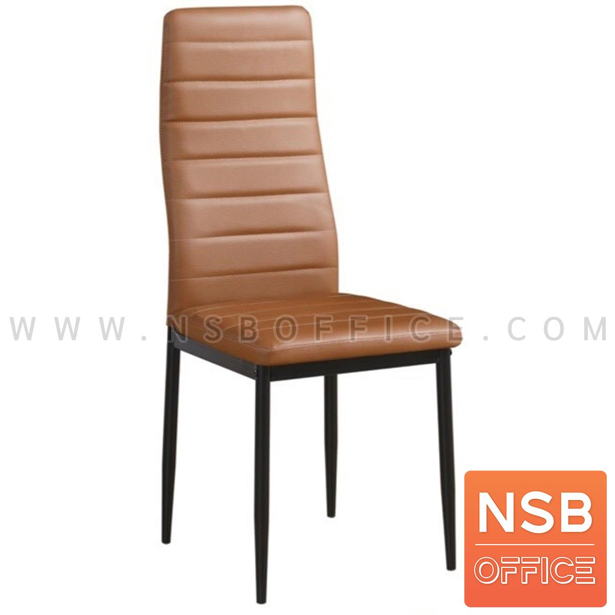 : เก้าอี้รับประทานอาหาร รุ่น Cather (คาเธอร์) เบาะหุ้มหนังสีน้ำตาล หุ้มหนังเทียม ขาเหล็กสีดำ
