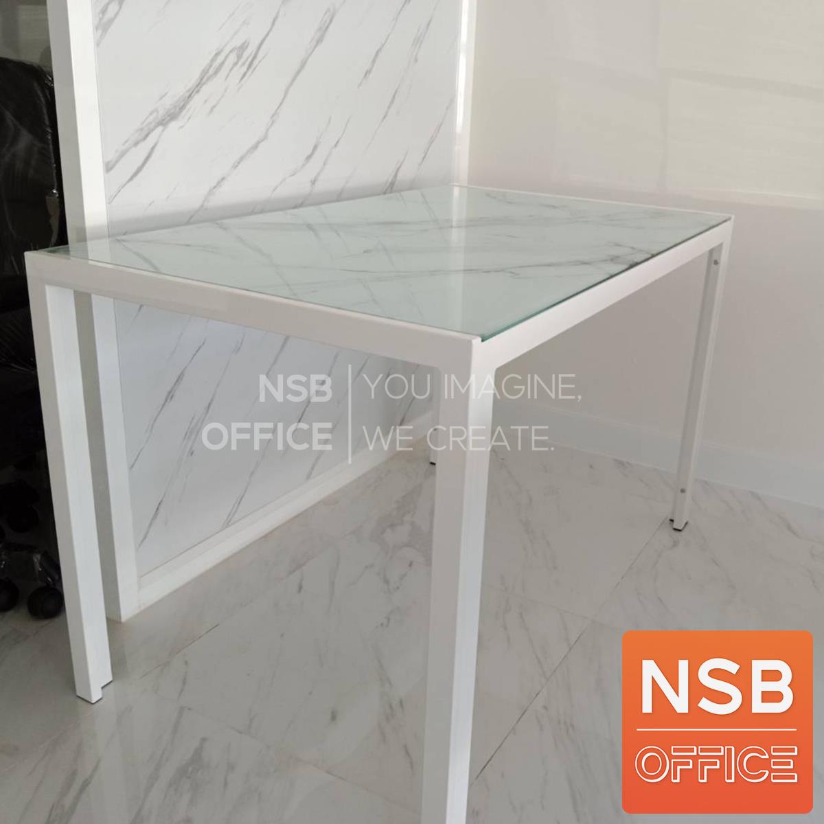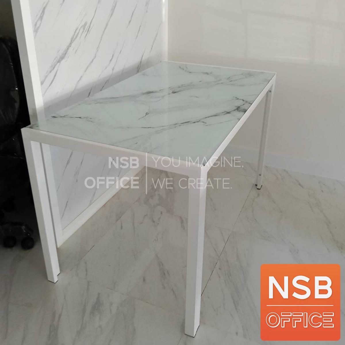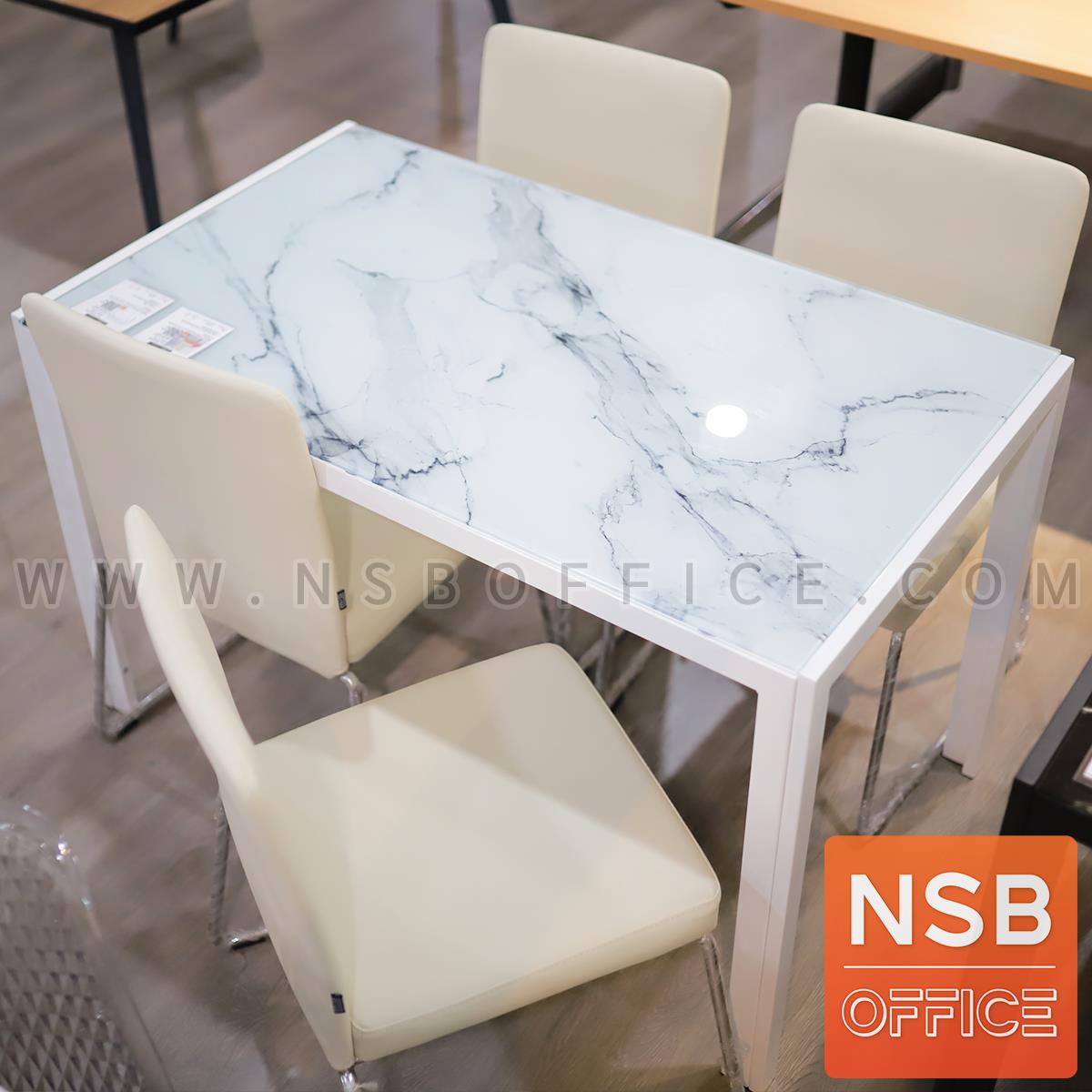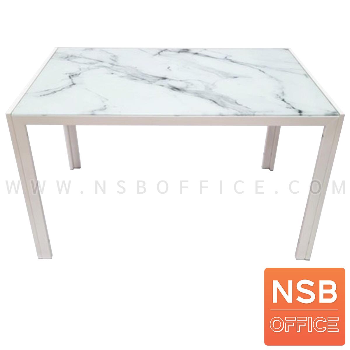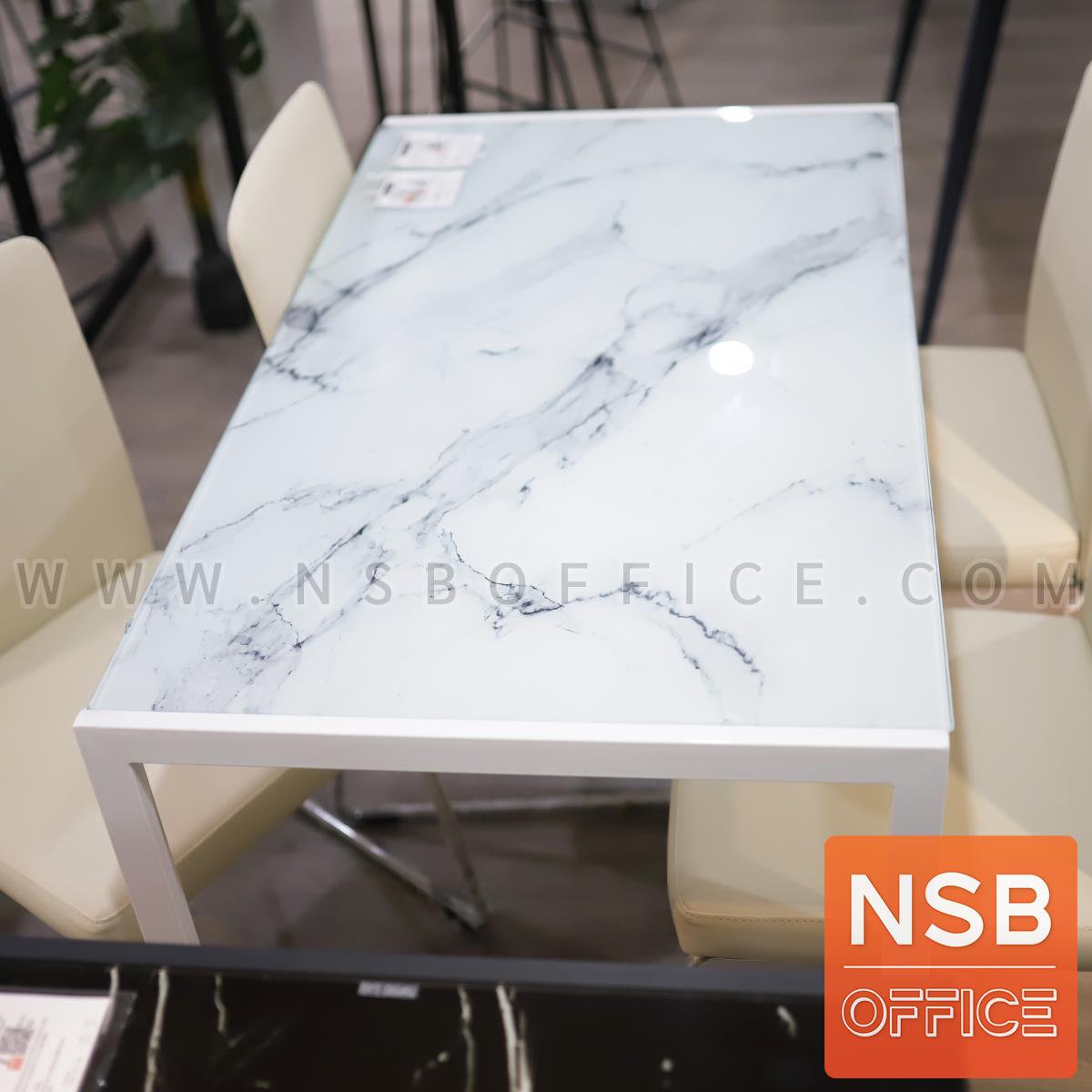G14A254: โต๊ะรับประทานอาหารหน้ากระจกลายหินอ่อน รุ่น Argen (อาร์เจน) ขนาด 120W*70D cm. ขาเหล็กสีขาว (ยกเลิก27/12/23)