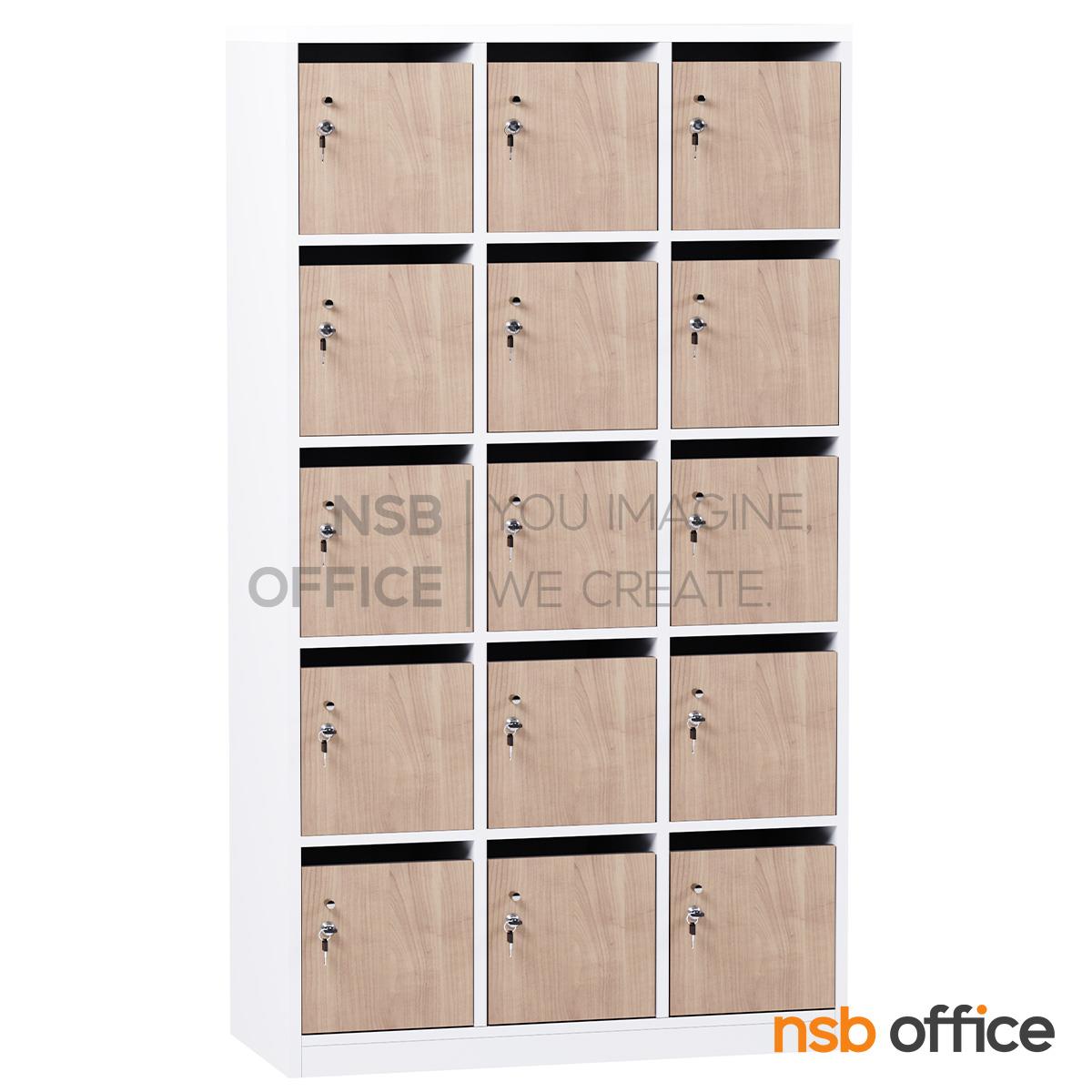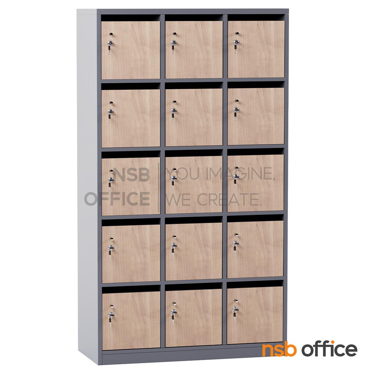 : ตู้ล็อกเกอร์ไม้ 15 ประตู ใส่ซองจดหมาย รุ่น helena (เฮเลนน่า) ขนาด 90W*160H cm. กุญแจล็อก