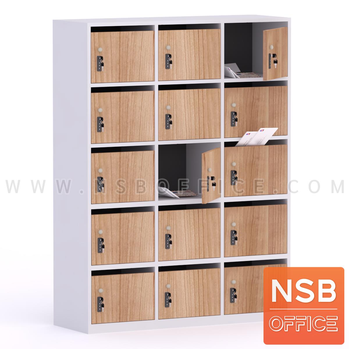 C13A025: ตู้ล็อกเกอร์ไม้ 15 ประตู ใส่ซองจดหมาย รุ่น Helga (เฮลก้า) ขนาด 90W*160H cm. กุญแจล็อกรหัส