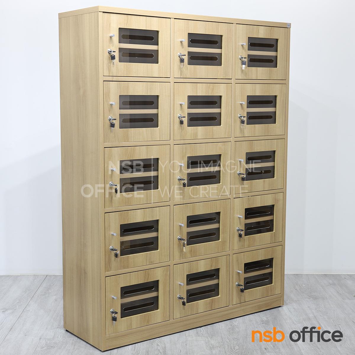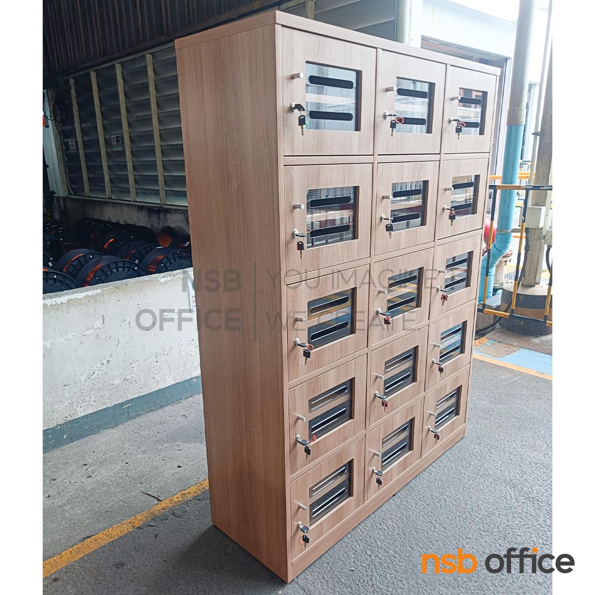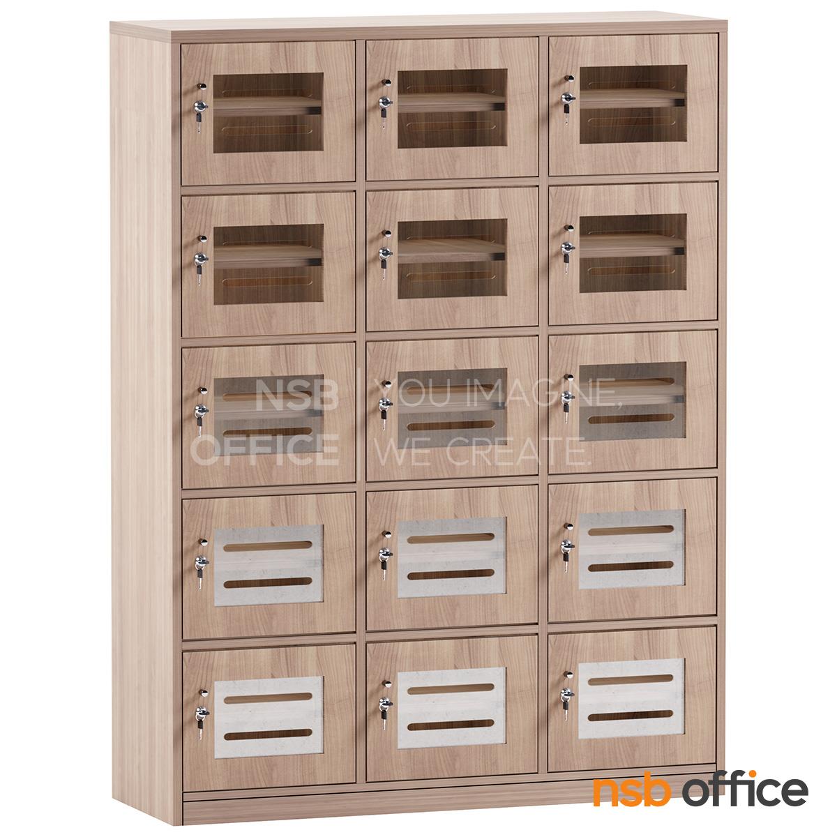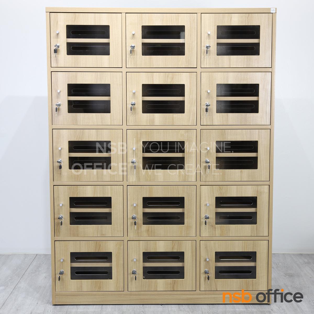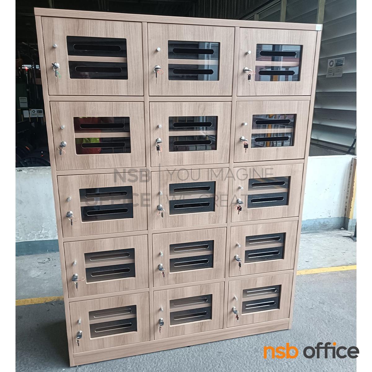 : ตู้ล็อกเกอร์ไม้ 15 ประตู ใส่ซองจดหมาย รุ่น Hepzibah (เฮปซิบาร์) ขนาด 120W*160H cm. บานอะคริลิค กุญแจล็อก