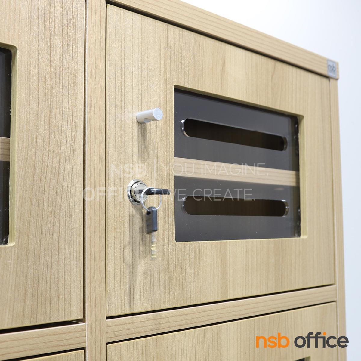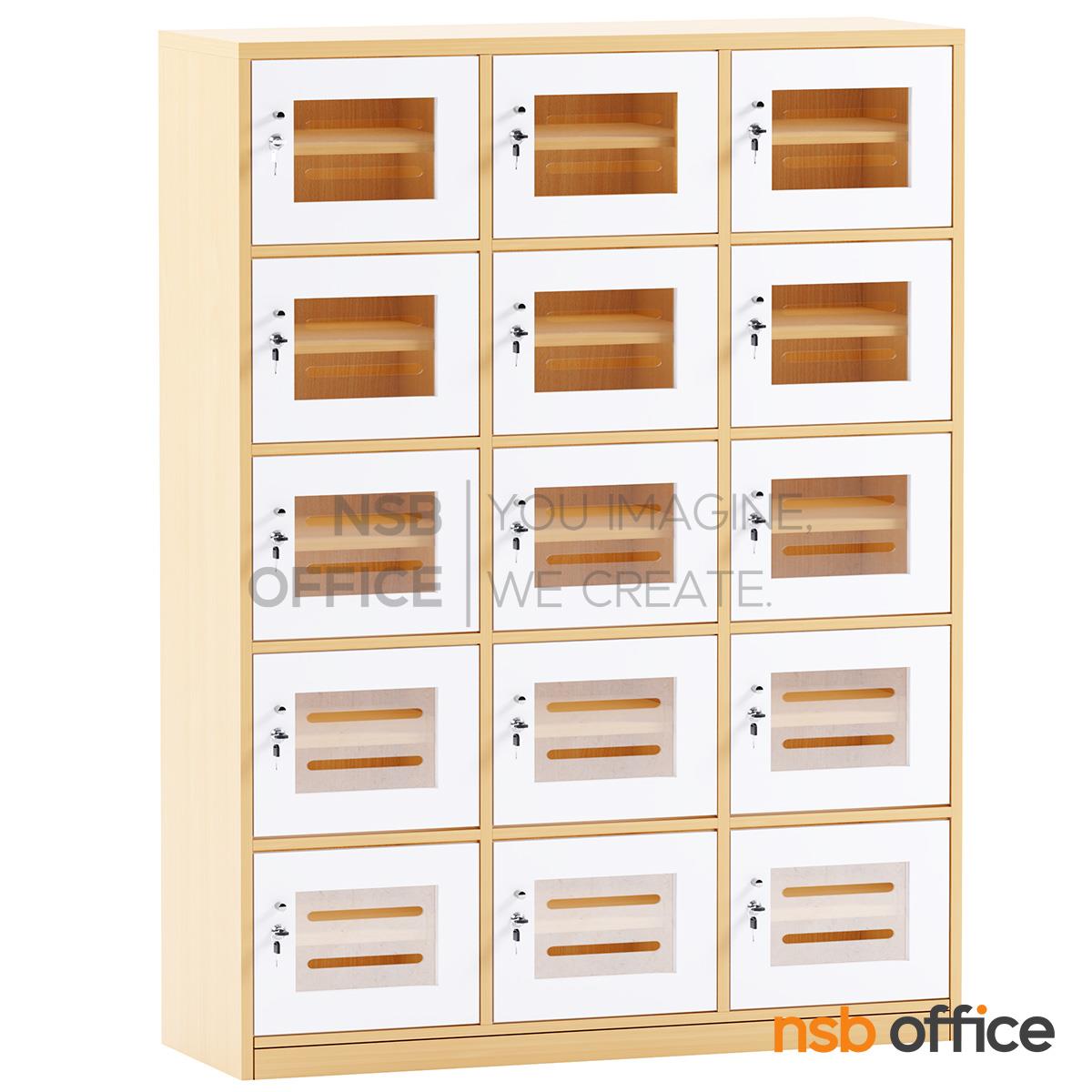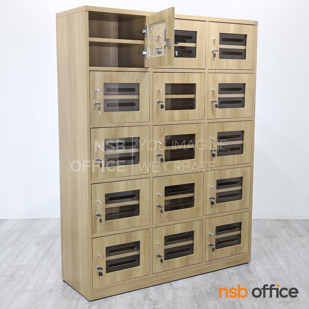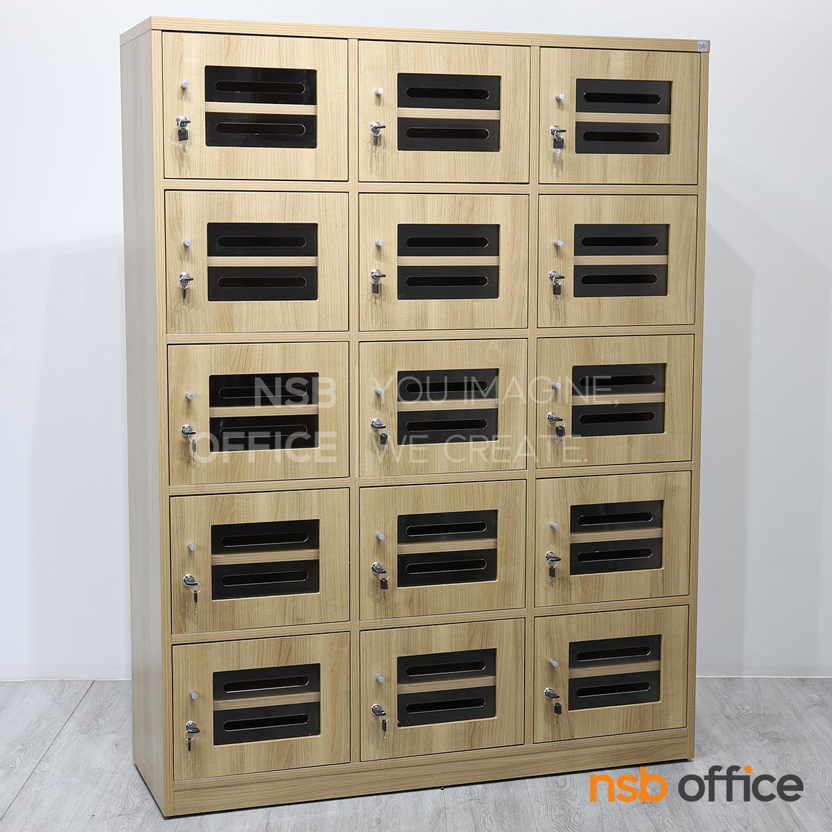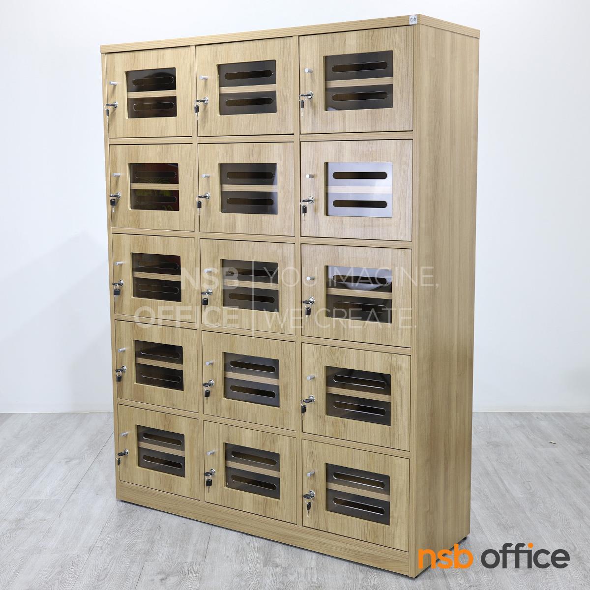 : ตู้ล็อกเกอร์ไม้ 15 ประตู ใส่ซองจดหมาย รุ่น Hepzibah (เฮปซิบาร์) ขนาด 120W*160H cm. บานอะคริลิค กุญแจล็อก
