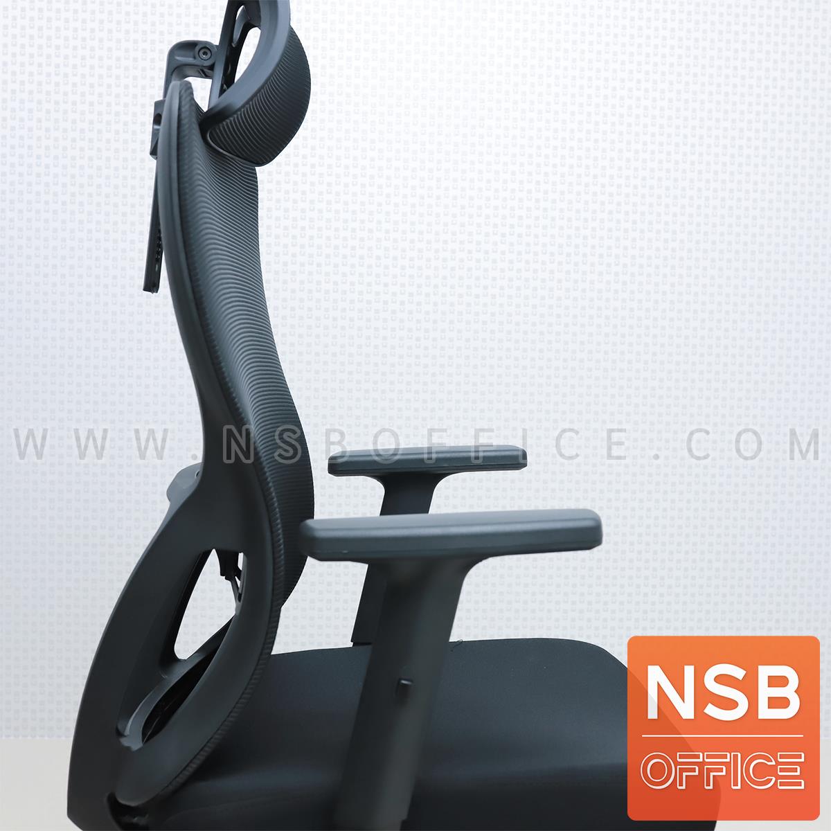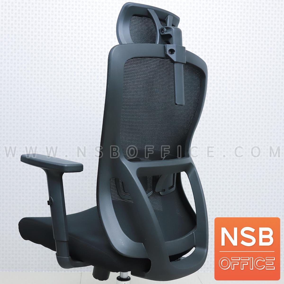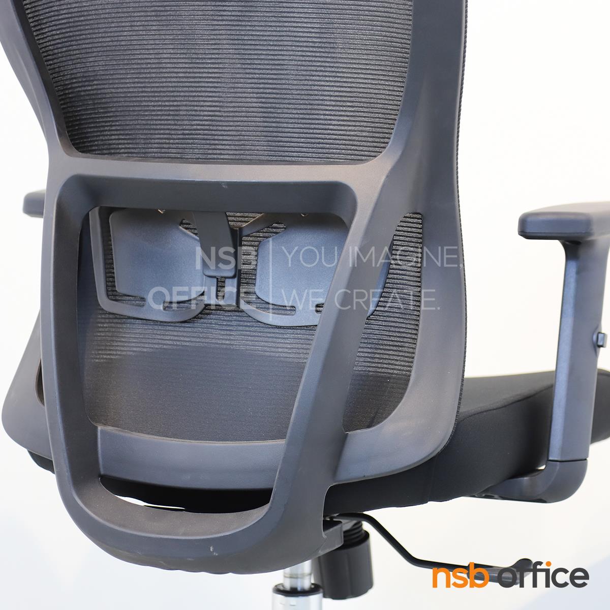 พนักพิงผลิตจากผ้าตาข่าย (Mesh) คุณสมบัติระบายอากาศได้ดี ลดความร้อนสะสมขณะใช้งาน พร้อมโครงสร้างรองรับแผ่นหลังเพื่อความสบายและรองรับสรีระในการนั่งทำงานระยะยาว