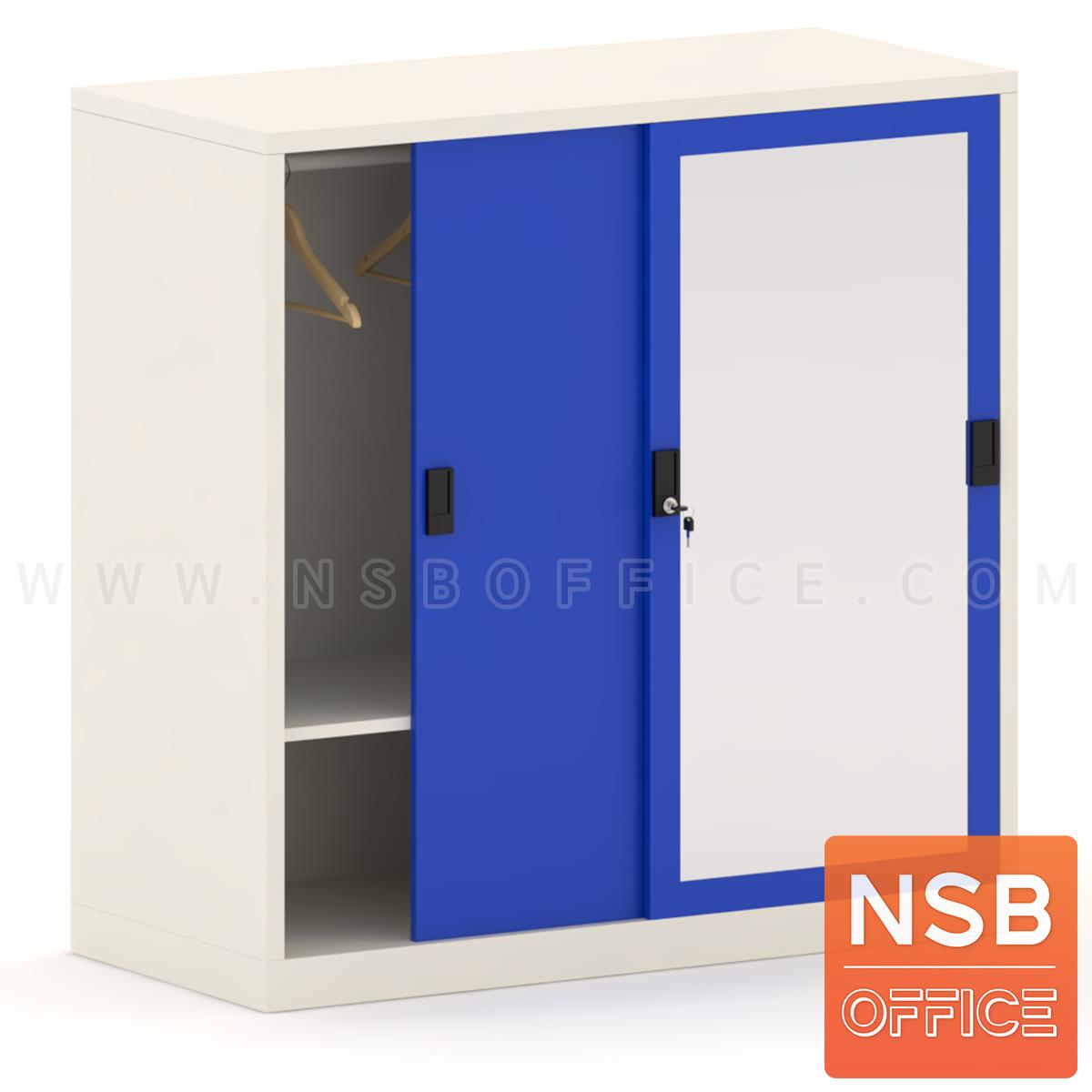 E03A069: ตู้เสื้อผ้าเหล็ก บานเลื่อนทึบผสมกระจกเงาเตี้ย รุ่น Ventur (เวนเทอร์) ขนาด 3, 4 ฟุต 1 แผ่นชั้น
