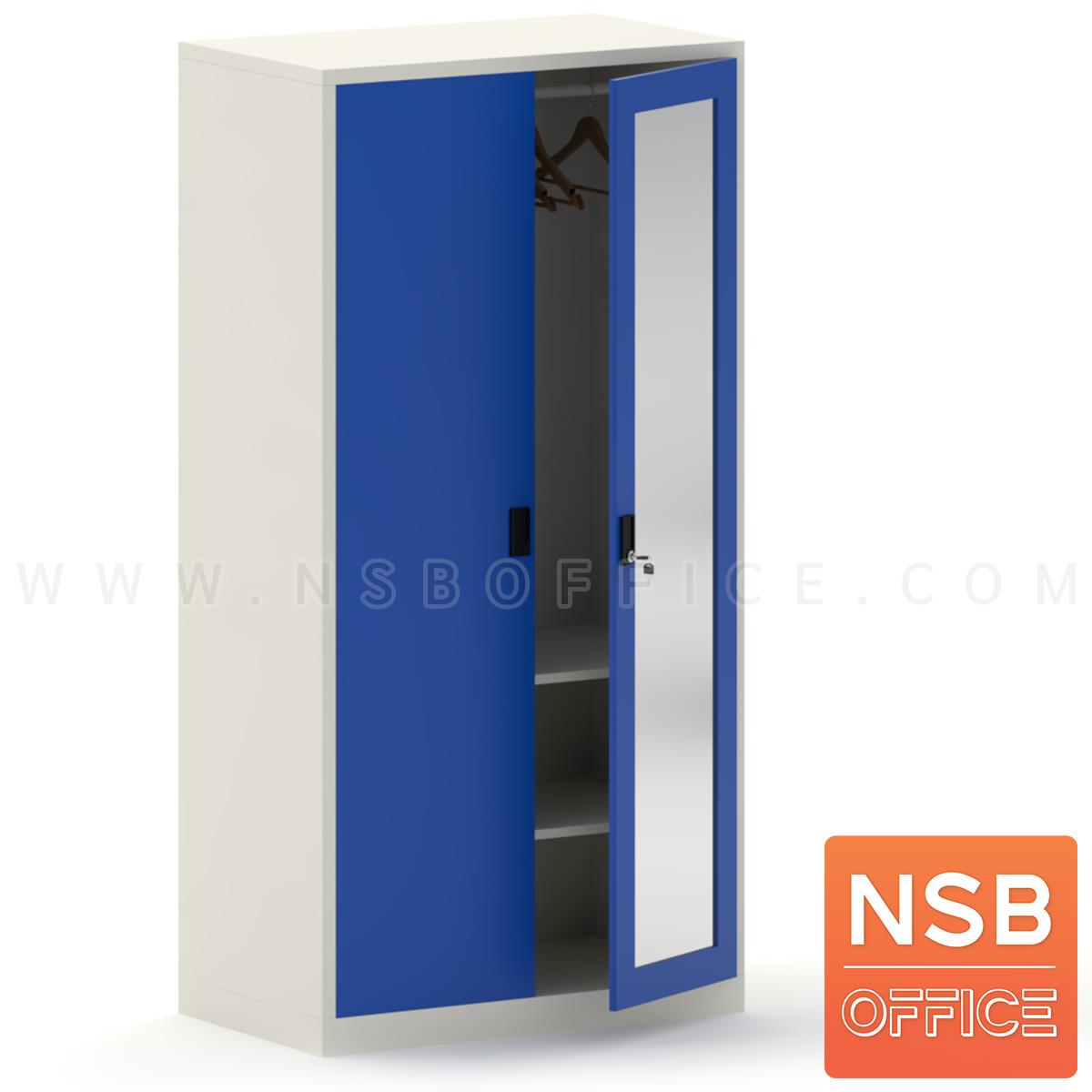 E03A074: ตู้เสื้อผ้า 2 บานเปิดทึบผสมกระจกเงา รุ่น Atwin (แอทวิน) ขนาด 3, 4 ฟุต 2 แผ่นชั้น