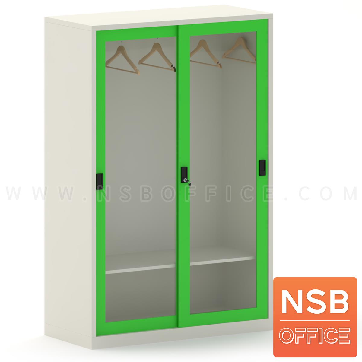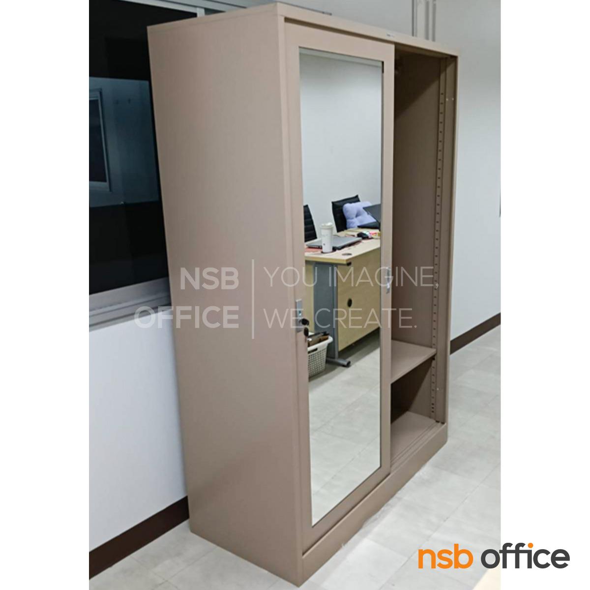 E03A077: ตู้เสื้อผ้าเหล็ก บานเลื่อนกระจกสูง รุ่น Petty ll (เพตตี 2) ขนาด 3, 4 ฟุต 1 แผ่นชั้น