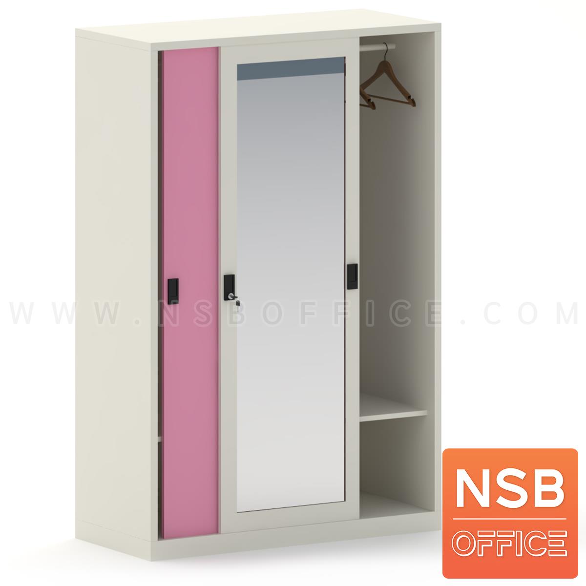 E03A078: ตู้เสื้อผ้าเหล็ก 2 บานเลื่อนทึบผสมกระจกเงา รุ่น Rexroth (เร็กซ์รอธ) ขนาด 3, 4 ฟุต 1 แผ่นชั้น