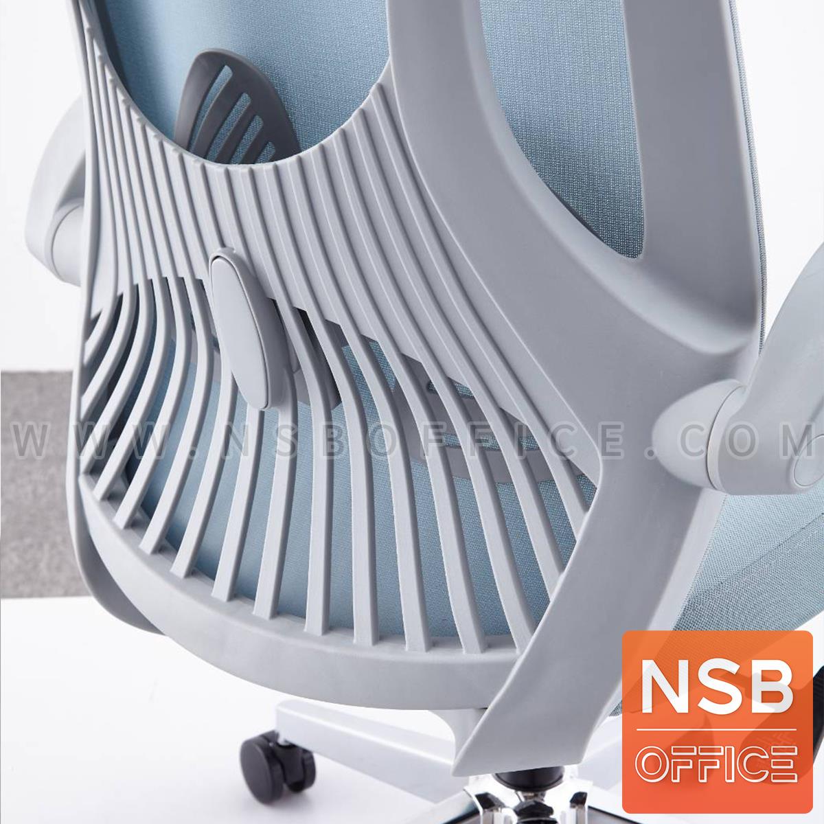 พนักพิงผลิตจากผ้าตาข่าย (Mesh) คุณสมบัติระบายอากาศได้ดี ลดความร้อนสะสมขณะใช้งาน พร้อมโครงสร้างรองรับแผ่นหลังเพื่อความสบายและรองรับสรีระในการนั่งทำงานระยะยาว