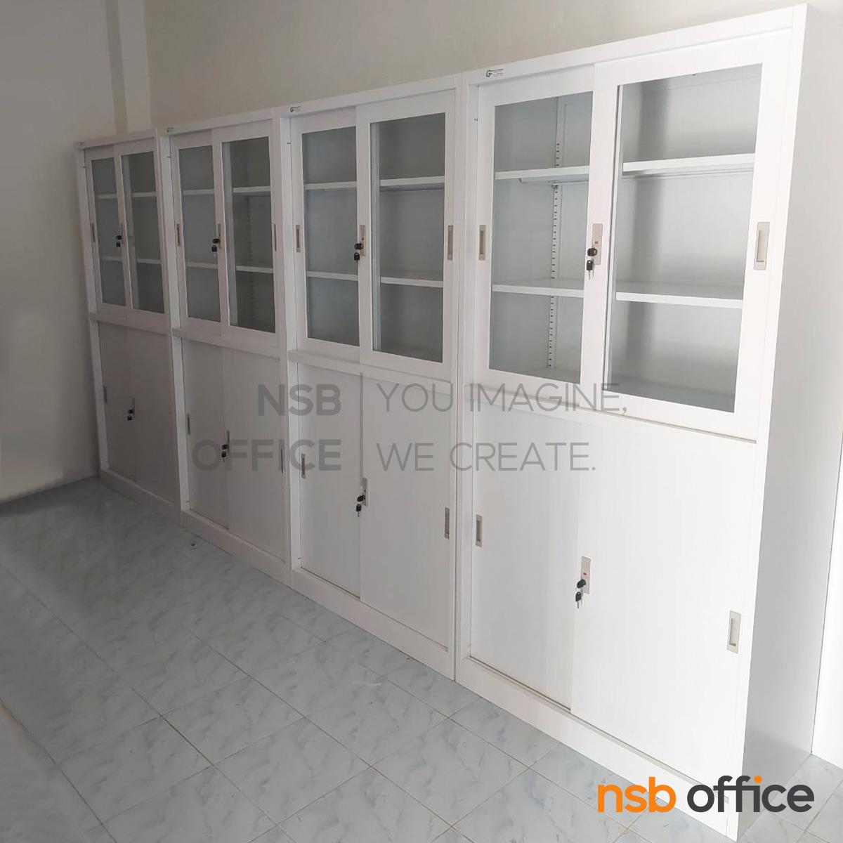 ตู้เอกสารบานเลื่อน 3 ฟุต สูง บนกระจก ล่างทึบ