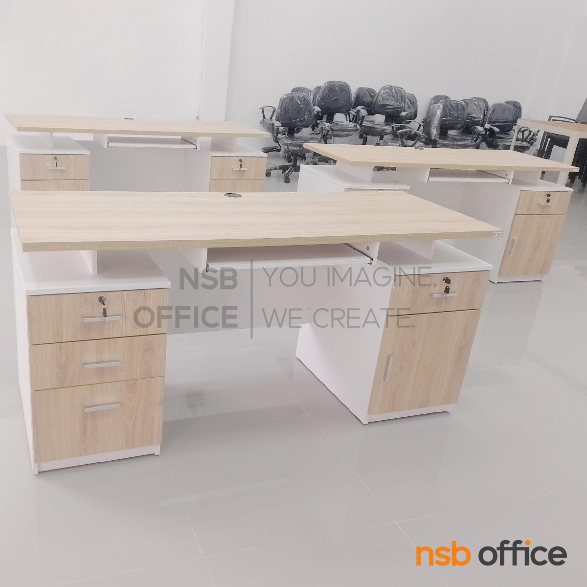 : โต๊ะทำงาน 4 ลิ้นชัก 1 บานเปิด รุ่น Fiction (ฟิคชั่น) ขนาด 160W cm. สีไวท์-คาราเมล