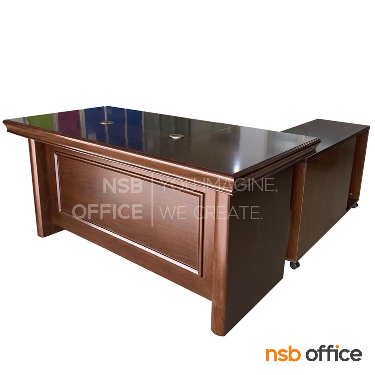 A06A157: โต๊ะผู้บริหารตัวแอล รุ่น Baylee (เบย์ลี) ขนาด 180W cm. พร้อมตู้และลิ้นชักข้าง
