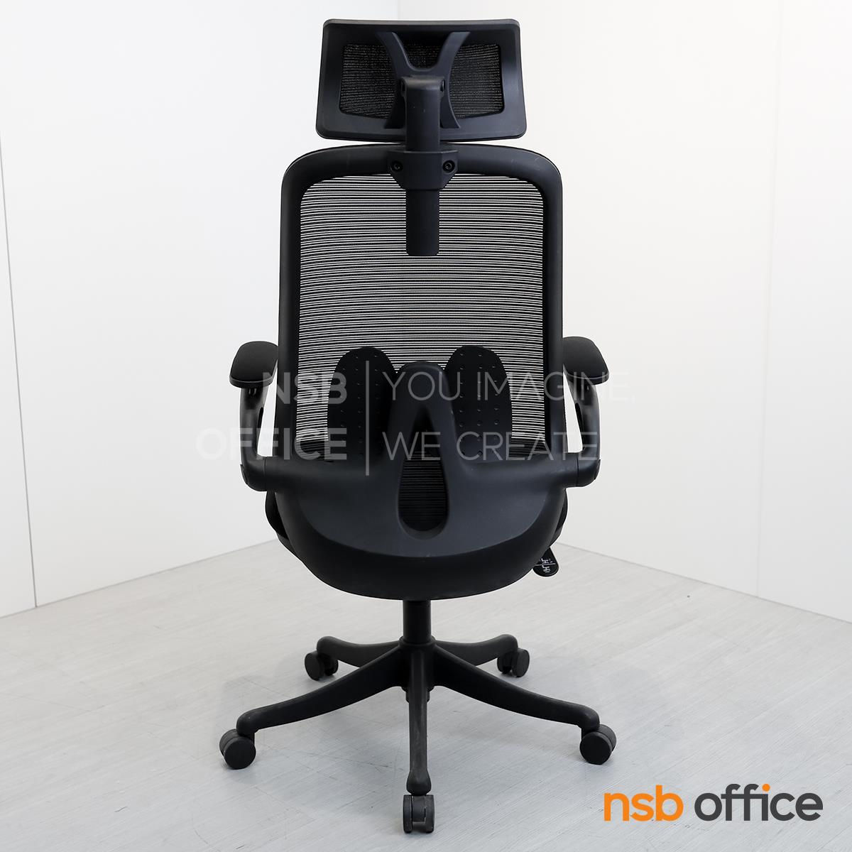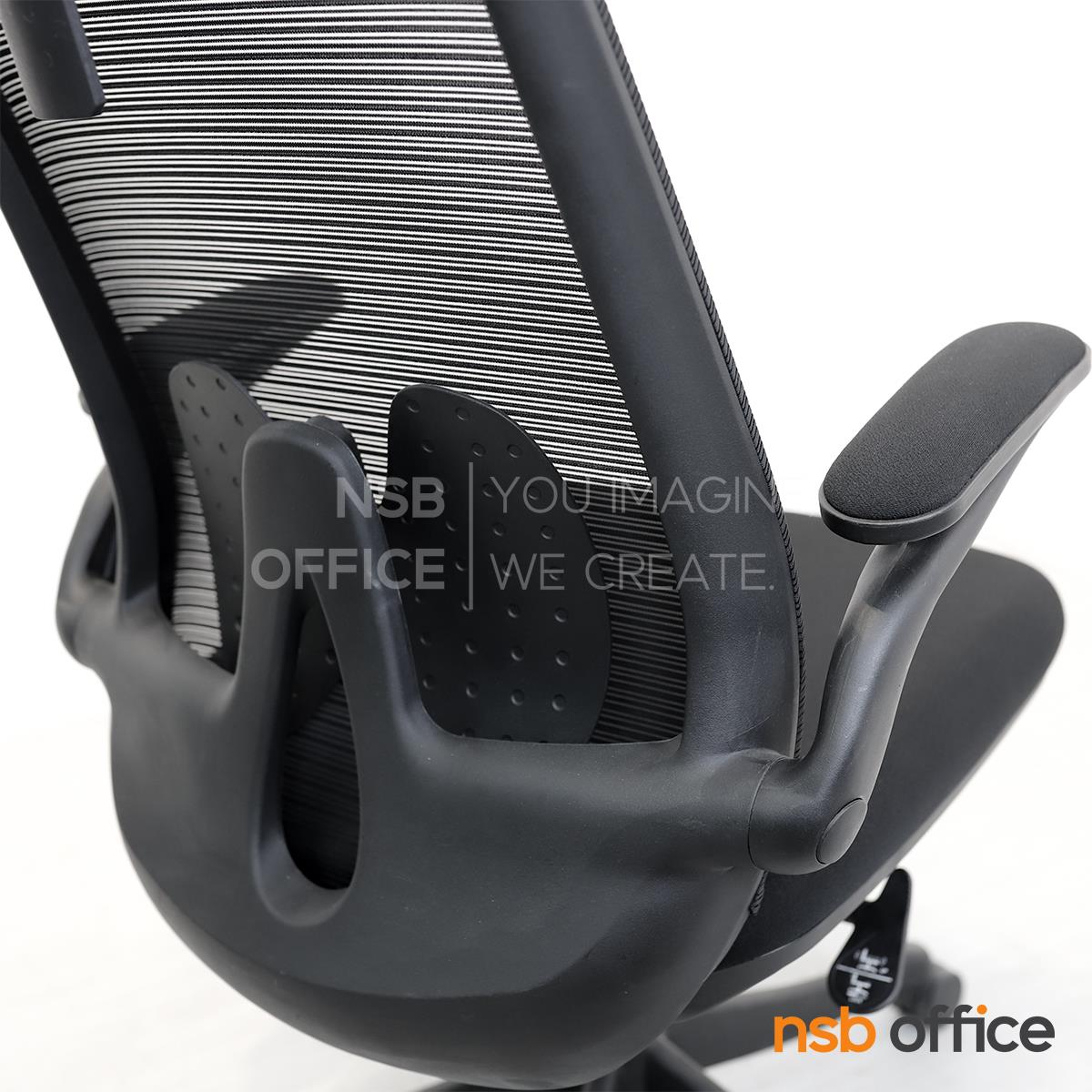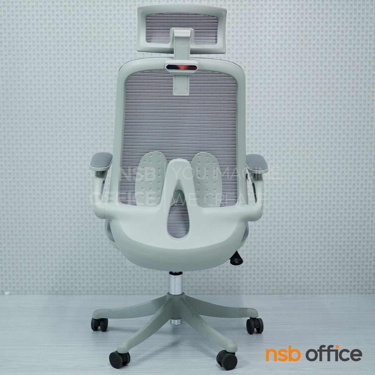 พนักพิงผลิตจากผ้าตาข่าย (Mesh) คุณสมบัติระบายอากาศได้ดี ลดความร้อนสะสมขณะใช้งาน พร้อมโครงสร้างรองรับแผ่นหลังเพื่อความสบายและรองรับสรีระในการนั่งทำงานระยะยาว