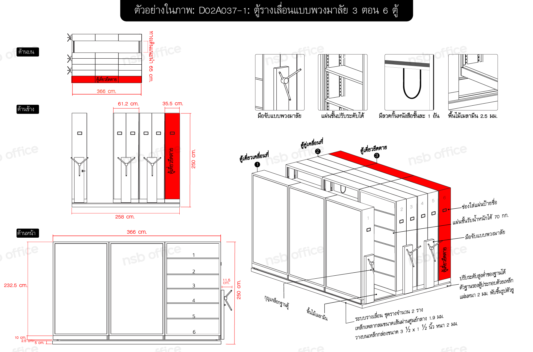 อธิบายขนาดตู้รางเลื่อน D02A037