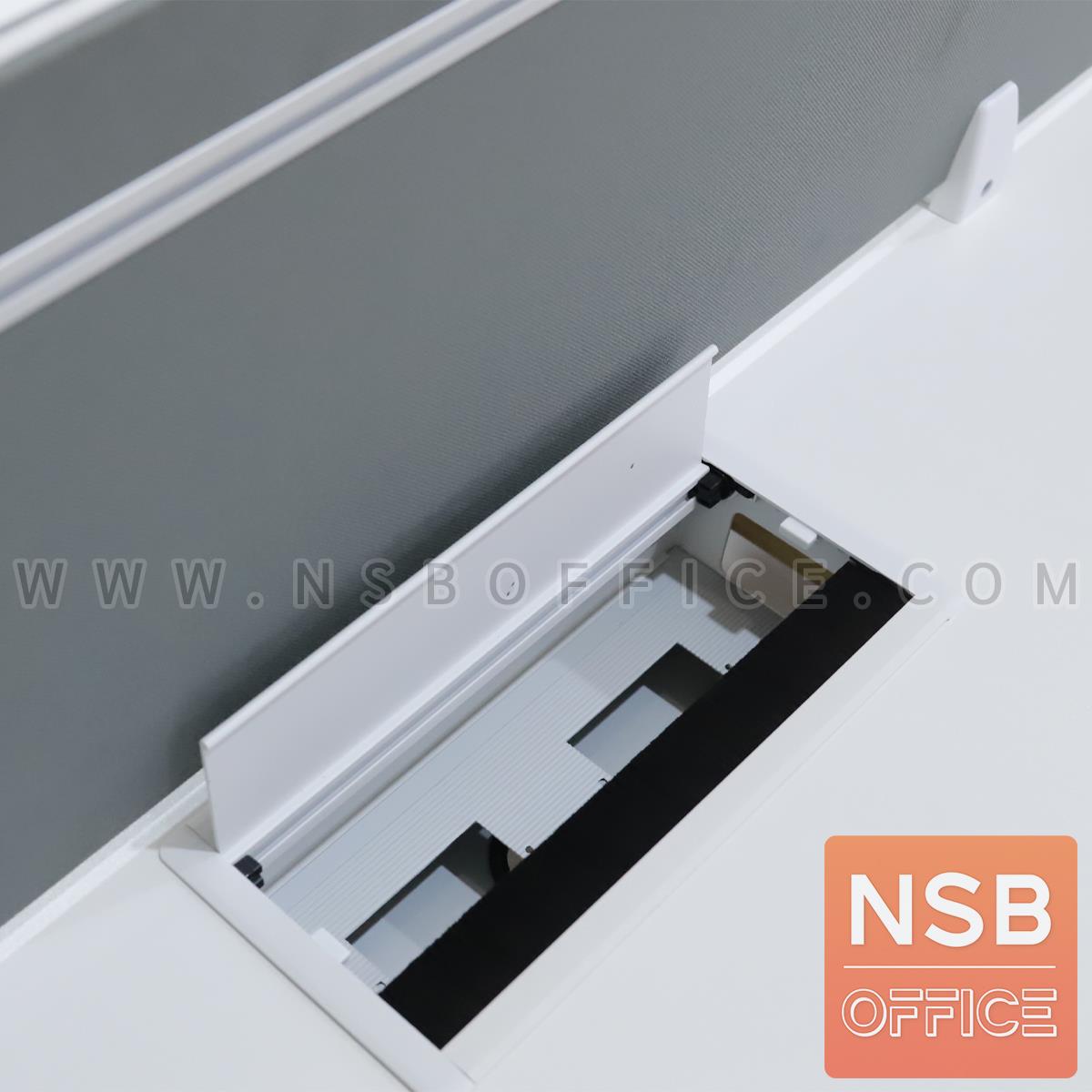 มินิสกรีนไม้ปาติเกิ้ลบอร์ด หุ้มด้วยผ้าฝ้ายแบบเจาะหน้าท็อปโต๊ะ แผ่นไม้หนา 12 มม. สูง 30 ซม. พร้อมตัวจับอลูมิเนียม เสริมด้วยรางแขวนอุปกรณ์เสริม
