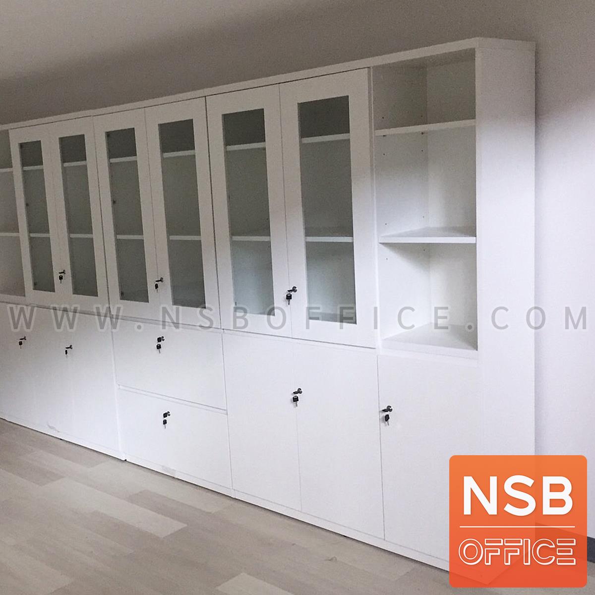 : ตู้เอกสาร 5 ชั้นบน 2 บานเปิดกระจกเฟรมไม้ ล่าง 3 บานเปิดทึบ Therine-2 (เธอรีน-2) ขนาด 120W cm. บานเพ่